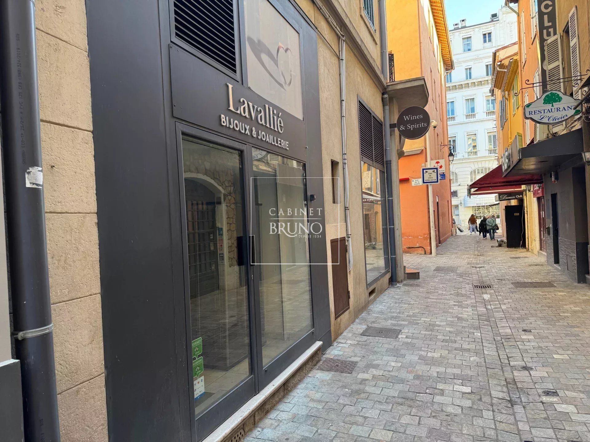 A quelques mètres de la Rue d'Antibes, proche Palais des Festivals, port, cours Félix Faure, Sur rue piétonne, petit magasin avec vitrine composé d'un rez-de-chaussée de 14 M2 et une mezzanine de 11 M2.