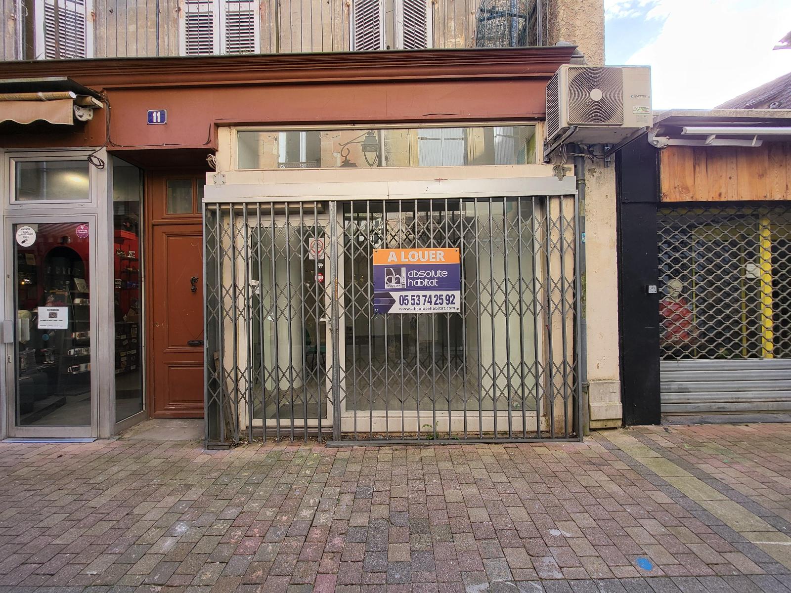 Local à Bergerac hyper centre - Local situé dans le centre-ville de Bergerac, à proximité de tous commerces, comprenant une vitrine en façade, une grande pièce, avec cave et sanitaires au sous-sol accessibles par l'extérieur.