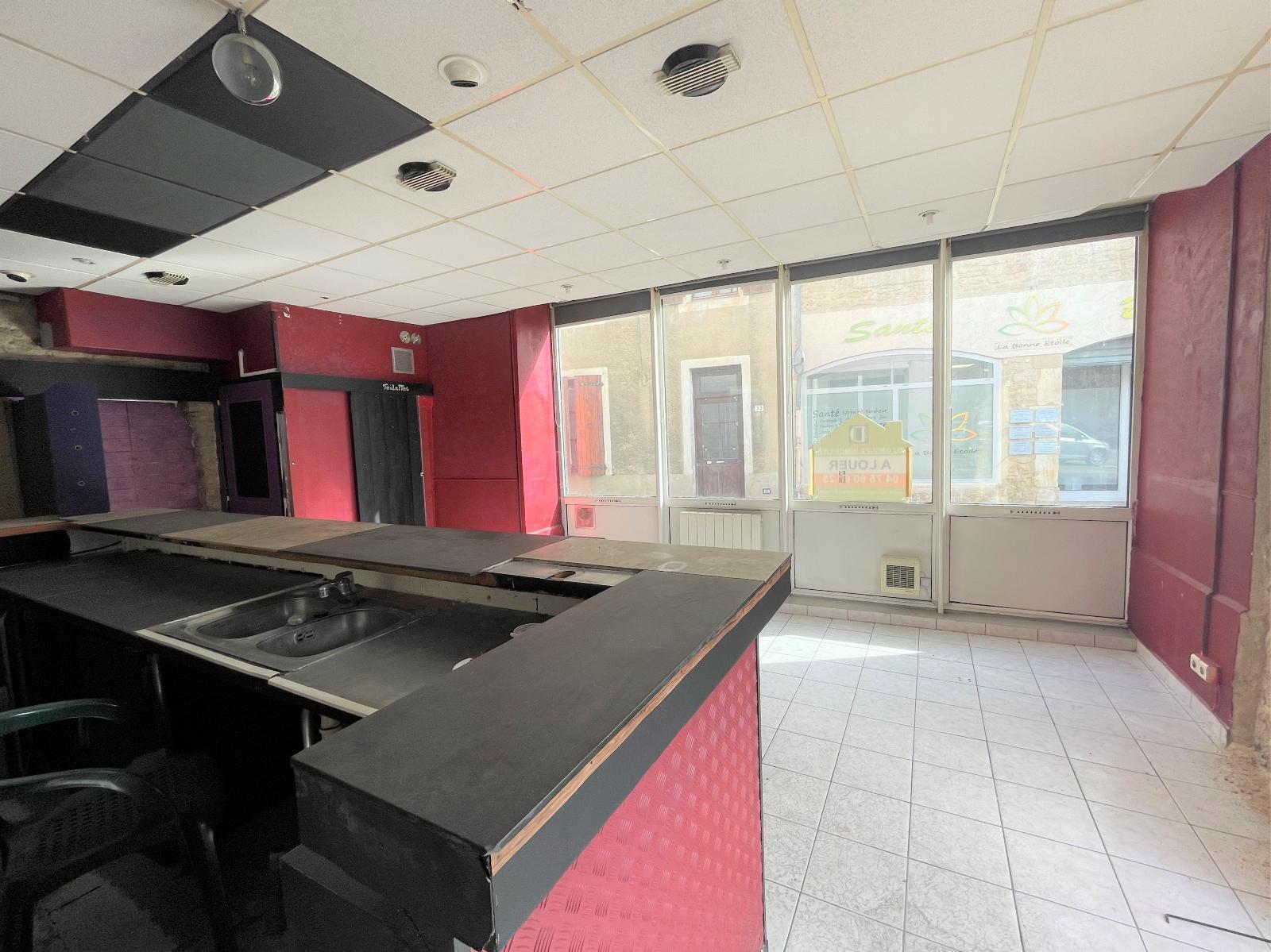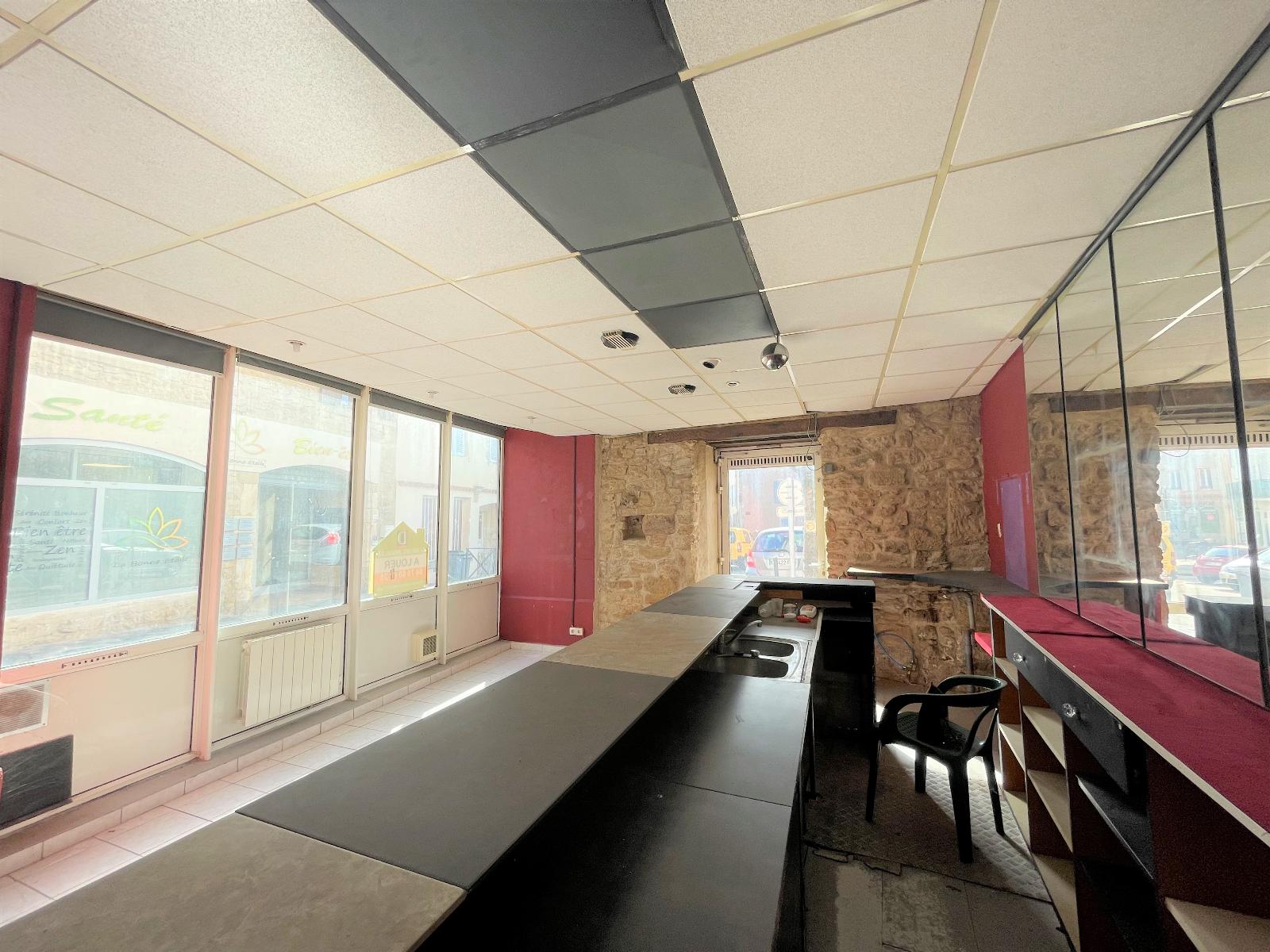 Surface intérieure 38 m2 , deux pièces, deux vitrines.