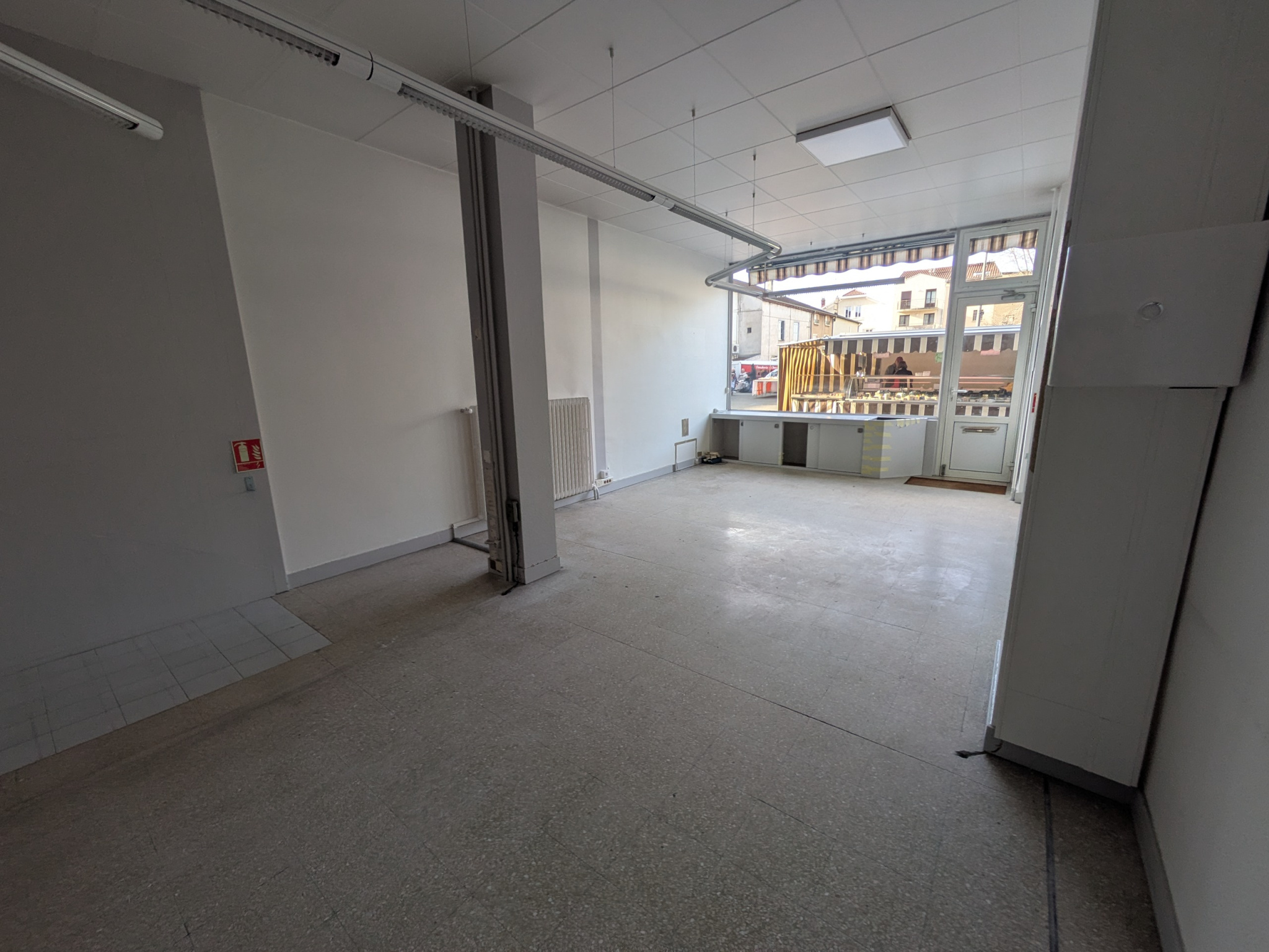 Situé au centre-ville de FEURS nous vous proposons ce local commercial en rez-de-chaussée avec deux vitrines et deux entrées indépendantes comprenant deux espaces de vente dont un avec placard , un bureau, un espace de stockage, W.C et point d'eau Emplac...