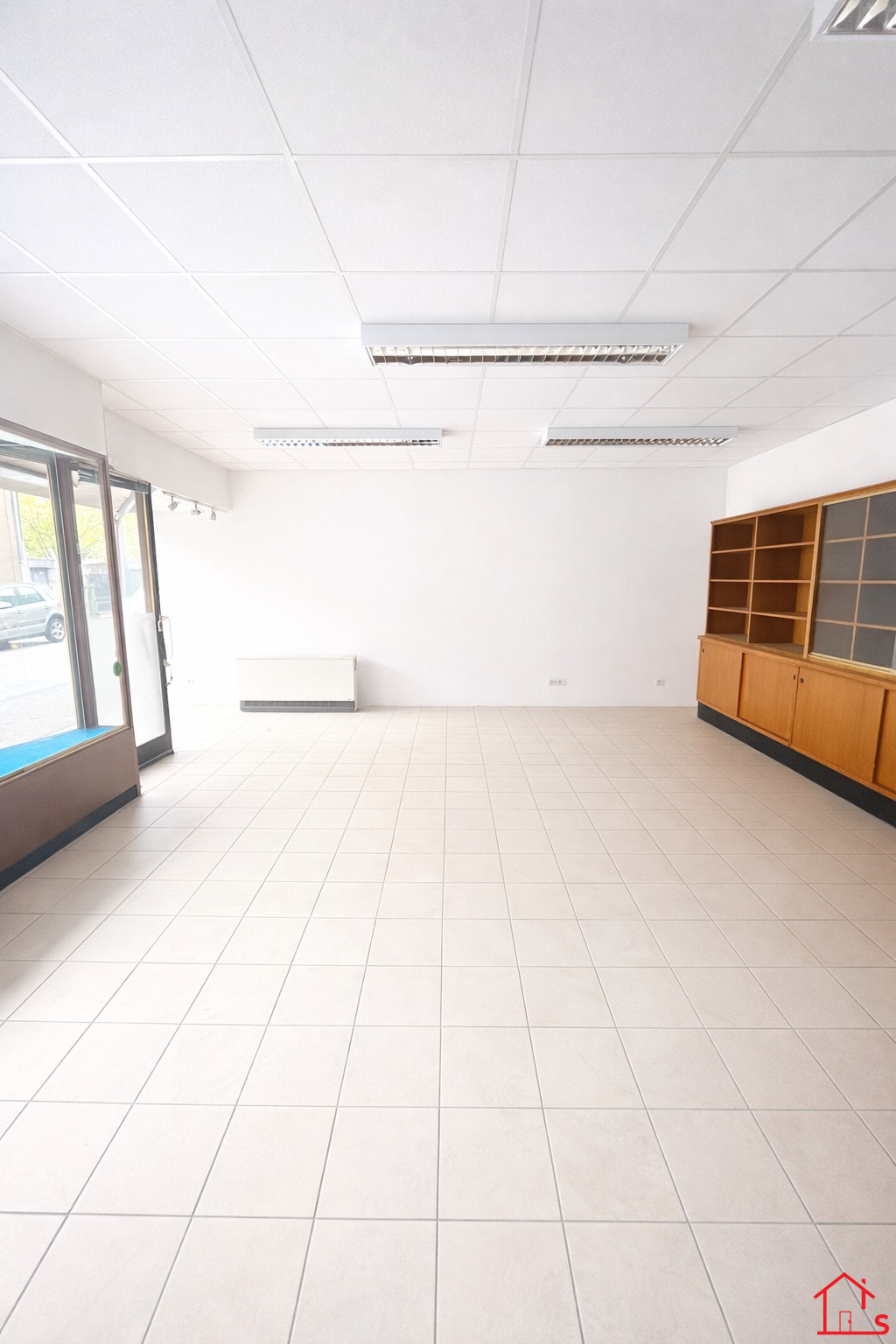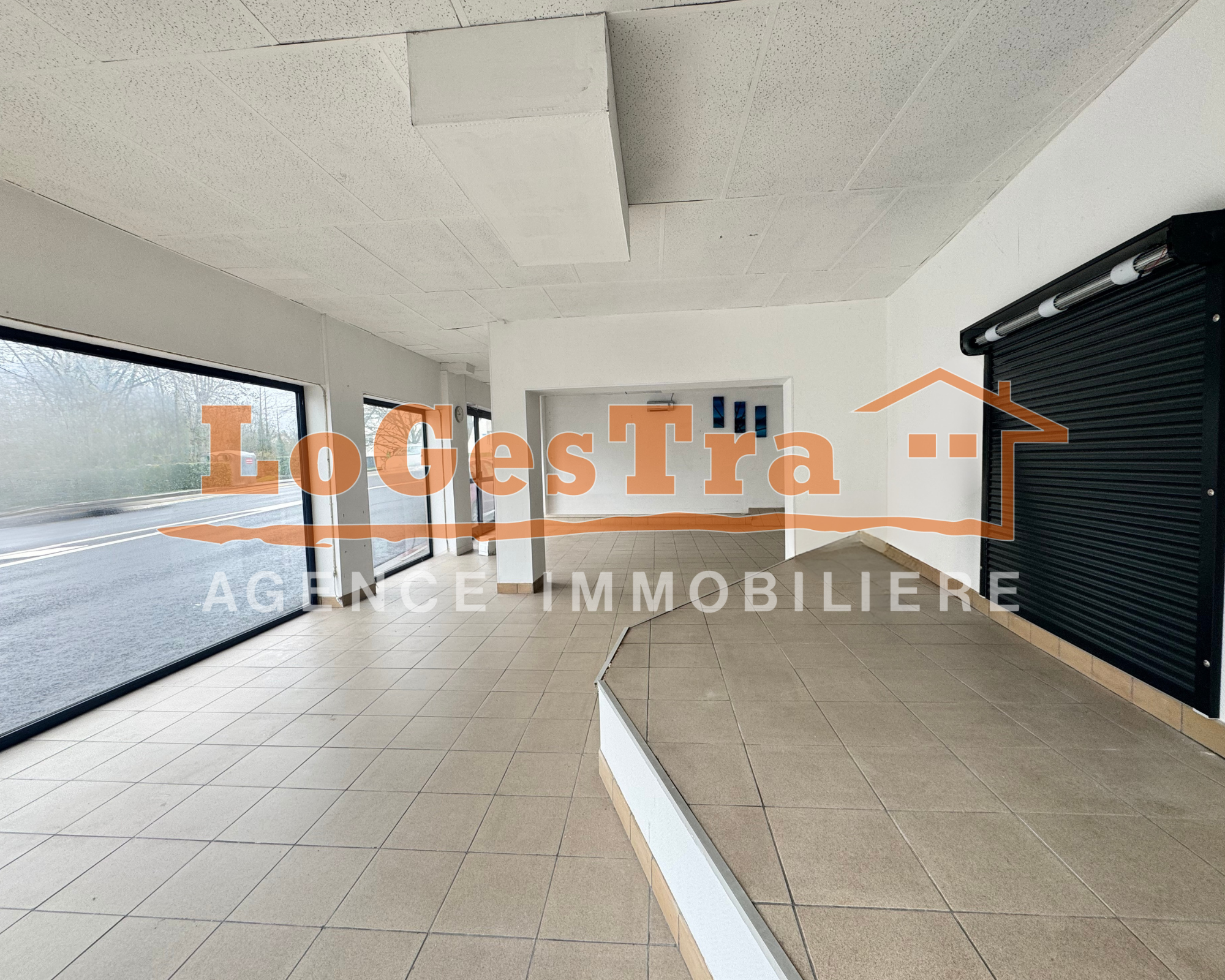Ce local commercial possède de grandes vitrines, une pièce principale lumineuse, un bureau, et un sanitaire.