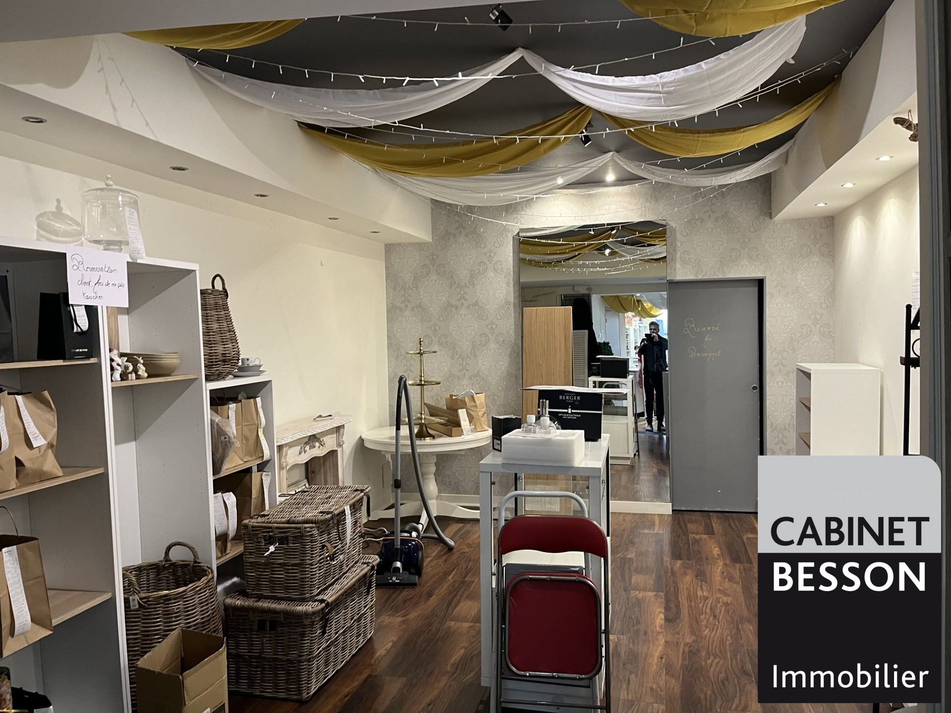 surface de 72 m² comprenant 56 m² de surface de vente, 8 m² de réserve et 11 m² de mezzanine + une cave de 5 m²