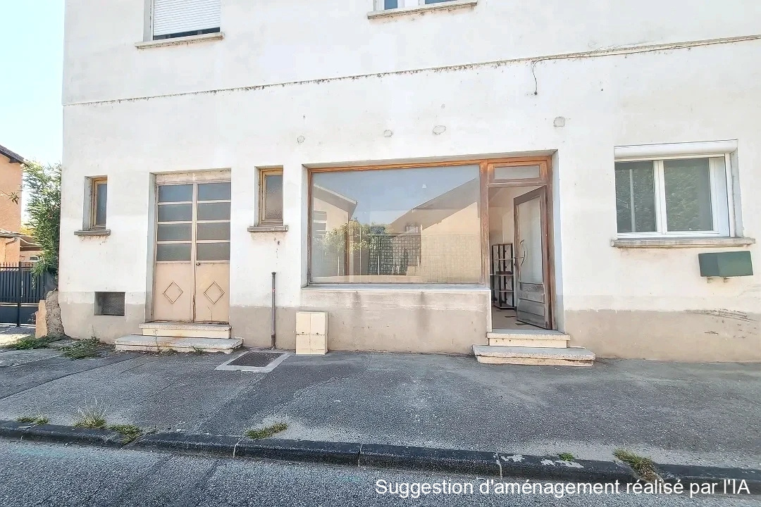 Plein centre-ville de PONT DE CHERUY, un local de 27m² en rez-de-chaussée avec pièce principale, une cuisine avec un WC.