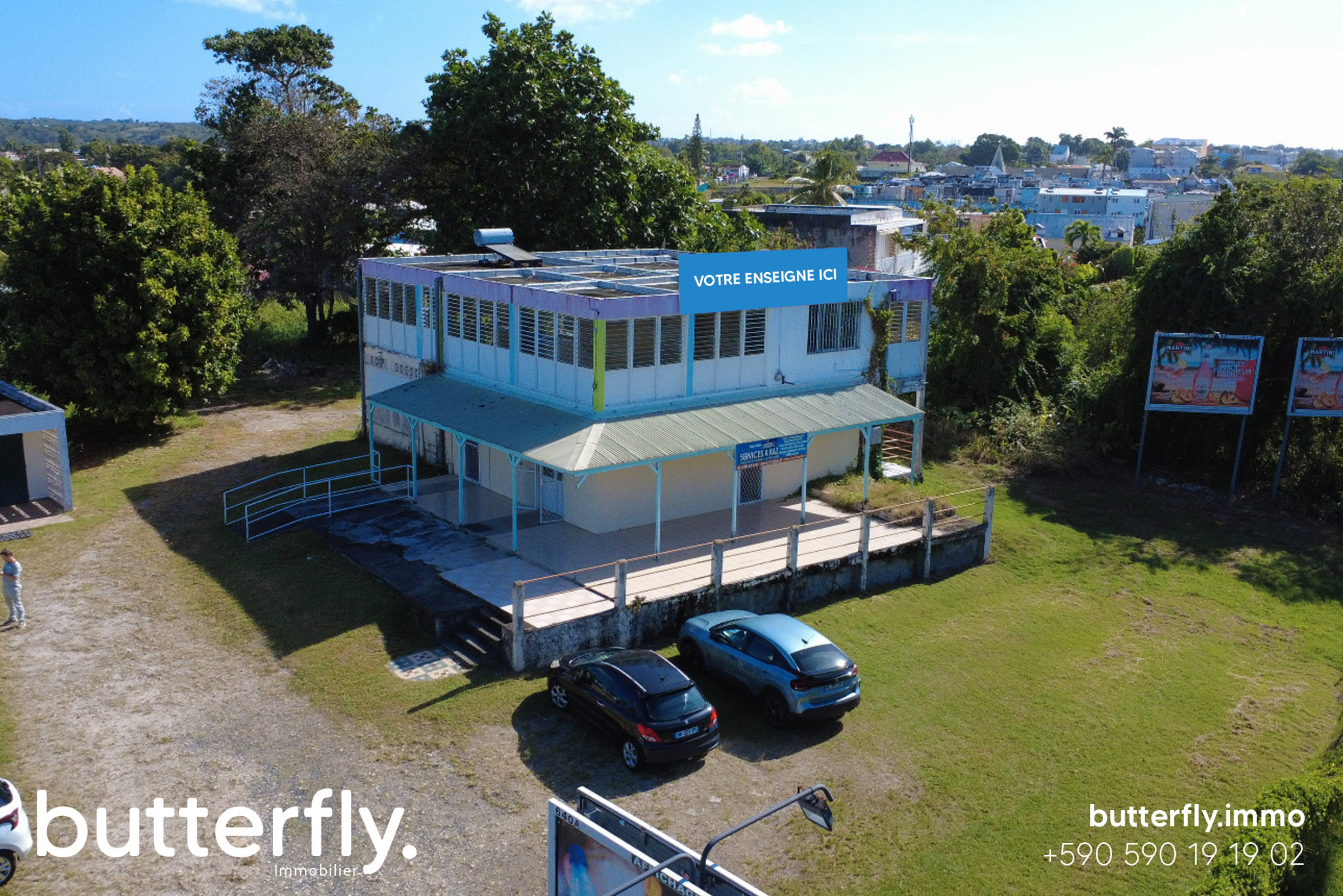 Idéalement situé, au coeur de la commune du GOSIER, local commercial au 1er étage comprenant une belle et lumineuse entrée sur un balcon et espace d'accueil, un grand bureau de 21.5m2 disposant d'arrivées et d'évacuations d'eau et d'un...