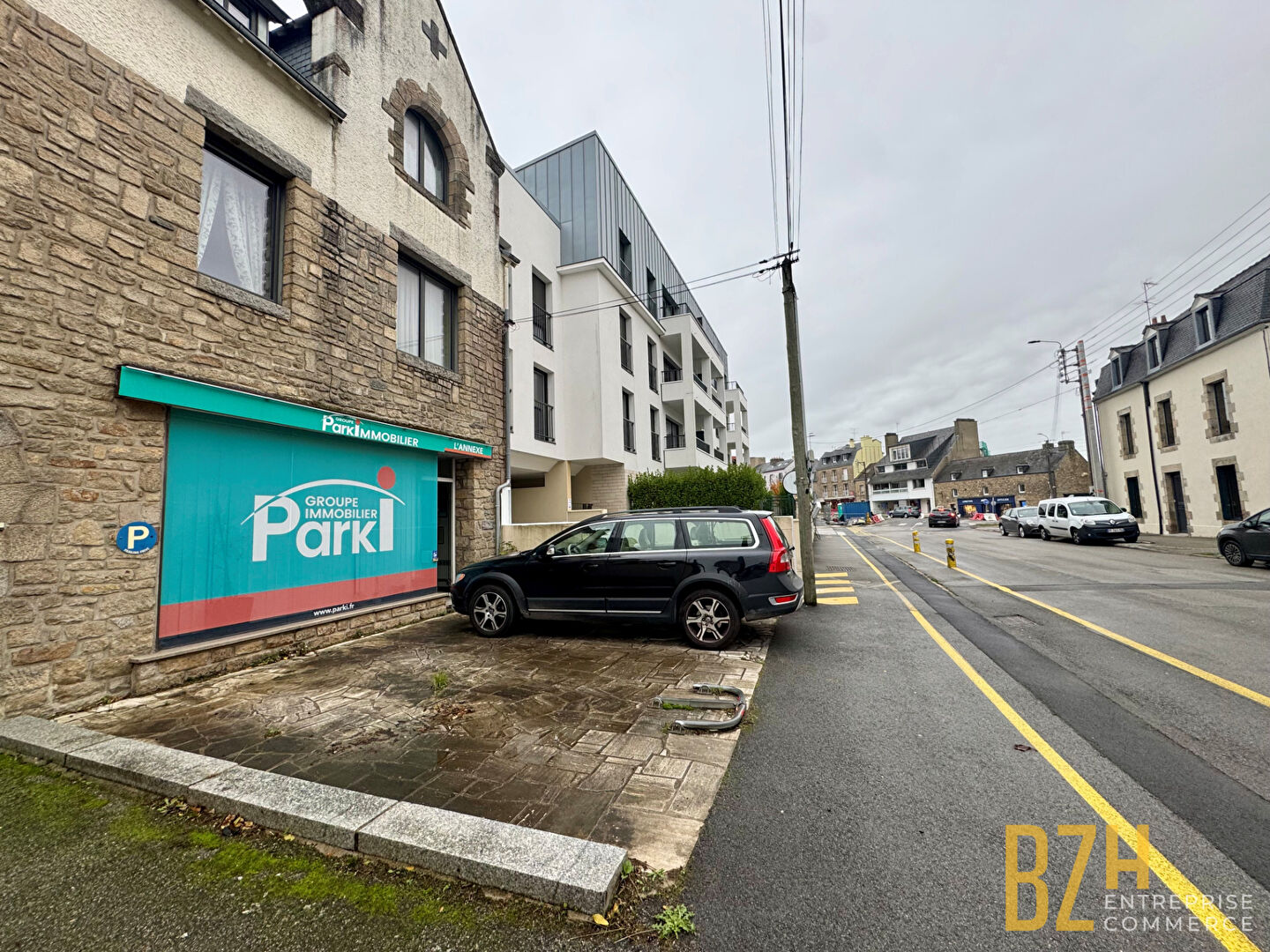BZH Entreprise et Commerce vous propose un local commercial de 220 m² avec 8 places de stationnement privatives. Brut de béton, fluides en attente. Située en bordure de voie express et à moins de 5 mn de la zone de KERPONT.