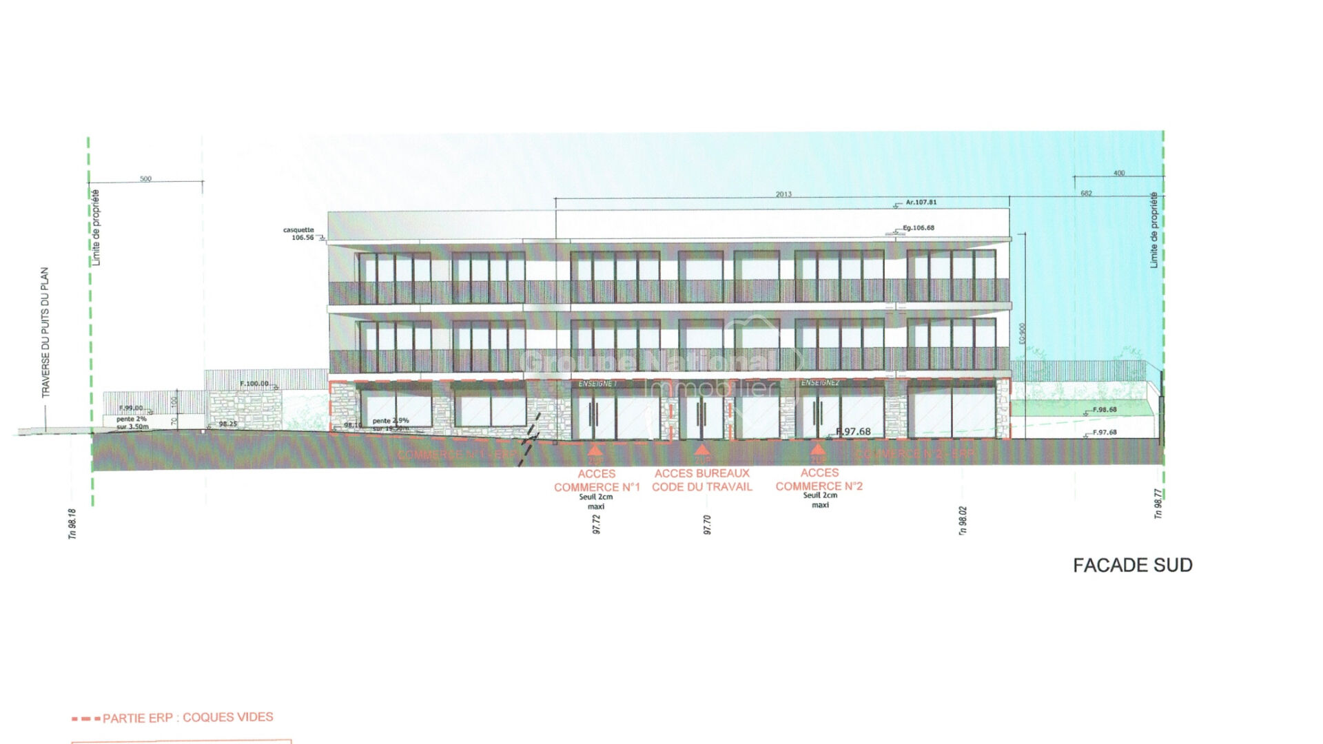 Un local commercial à louer de 93,61 m2, sur la commune de Mouans-Sartoux. Un bâtiment composé de 2 commerces en RDC, ainsi que deux bureaux sur les niveaux supérieurs. les locaux seront aux normes PMR (Personne a mobilité réduite).