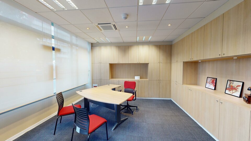 En 2ème étage d'un immeuble composé exclusivement de bureaux, ce grand plateau d'une surface d'environ 225 m² comprend 8 pièces climatisées de tailles différentes.