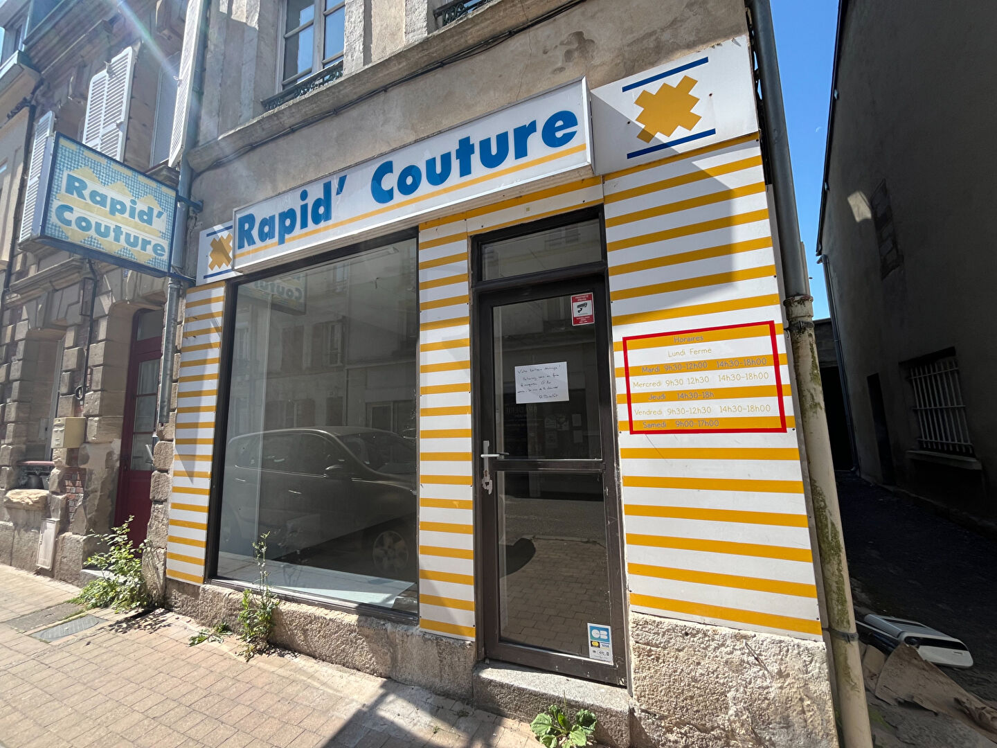 En centre ville : un local à usage commercial d'une surface de 45m², situé au rez-de-chaussée, comprenant : une pièce principale avec vitrine, une autre pièce avec coin cuisine et WC séparés. Chauffage électrique individuel. Eau et électricité individuell...