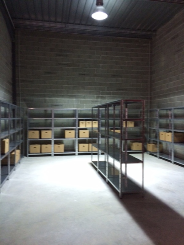 Ce local se compose de la pièce principale et d'un espace de stockage avec étagères puis d'un coin WC.
