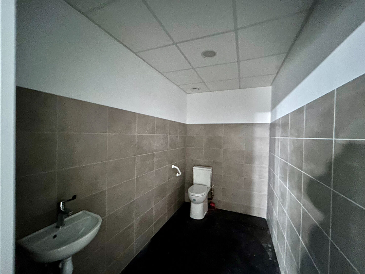 Espace à aménager selon vos besoins et envies (mezzanine possible) avec porte sectionnelle. 2 sanitaires avec lave-mains.