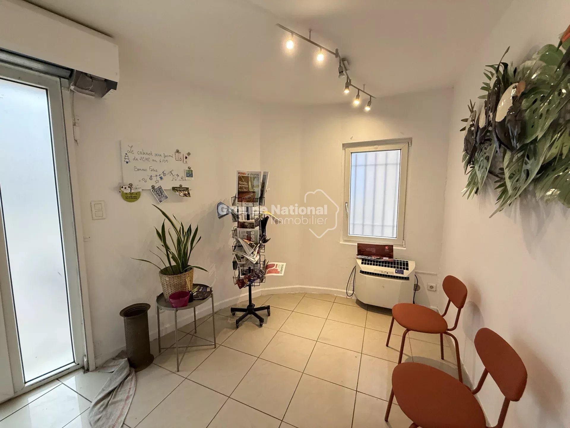 Situé au rez-de-chaussée d'un petit immeuble sur les quais, local commercial climatisé et refait à neuf de 23,5m² environ avec un petit patio Composé de deux pièces, une salle d'eau + wc, une buanderie.
