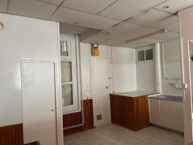 ANCIENNEMENT A USAGE DE CAFE/RESTAURANT, CE LOCAL COMPREND AU REZ-DE-CHAUSSEE UNE ANCIENNE SALLE DE CAFE, UNE GRANDE PIECE, UNE CUISINE ET SANITAIRES.