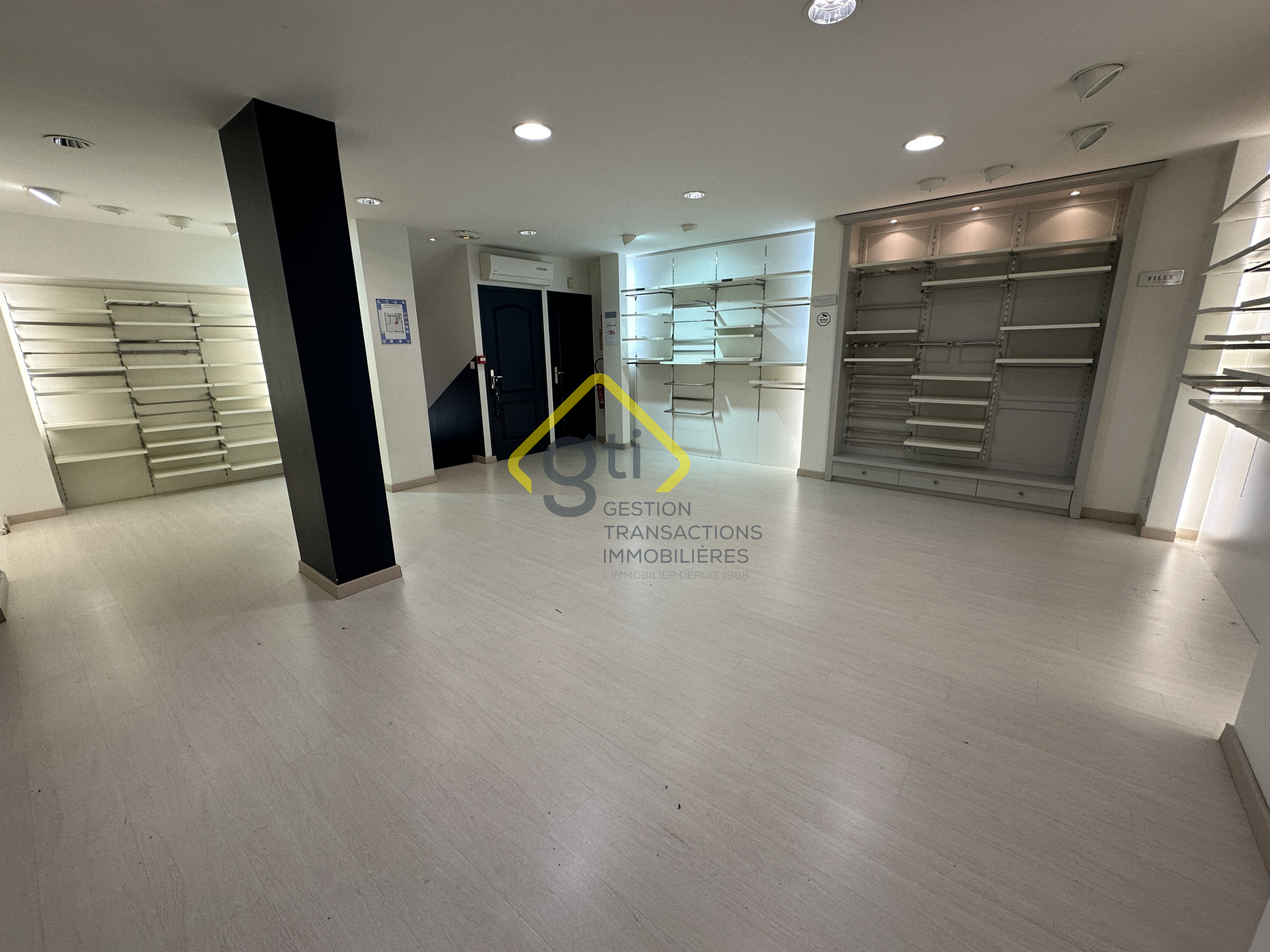 Il dispose de 2 vitrines et d'une entrée vitrée, sécurisées par des rideaux métalliques électriques.