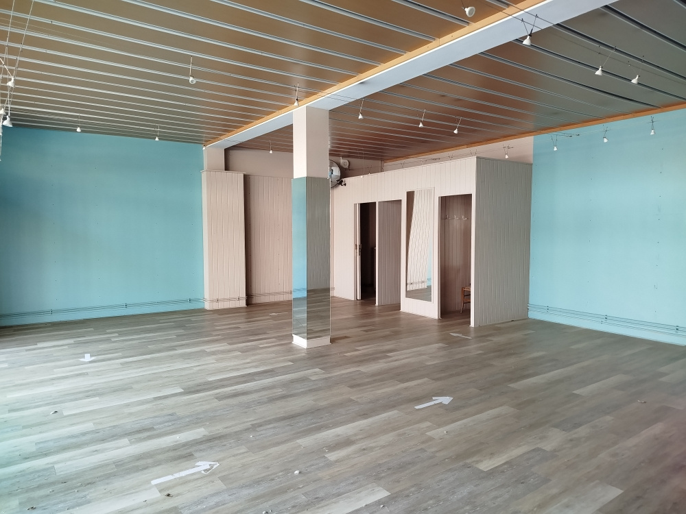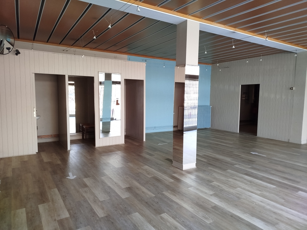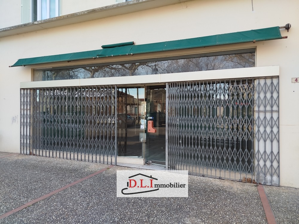 A SAINT-NICOLAS DE LA GRAVE, un local commercial de 90 m2 env. avec vitrine comprenant une surafce commerciale, une reserve, un bureau, sanitaires avec WC. Disponible.