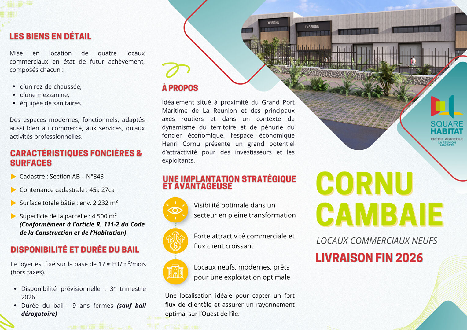 À LOUER -Locaux Commerciaux Neufs au coeur de la Future Zone Économique Cornu -Saint-Paul (97460)