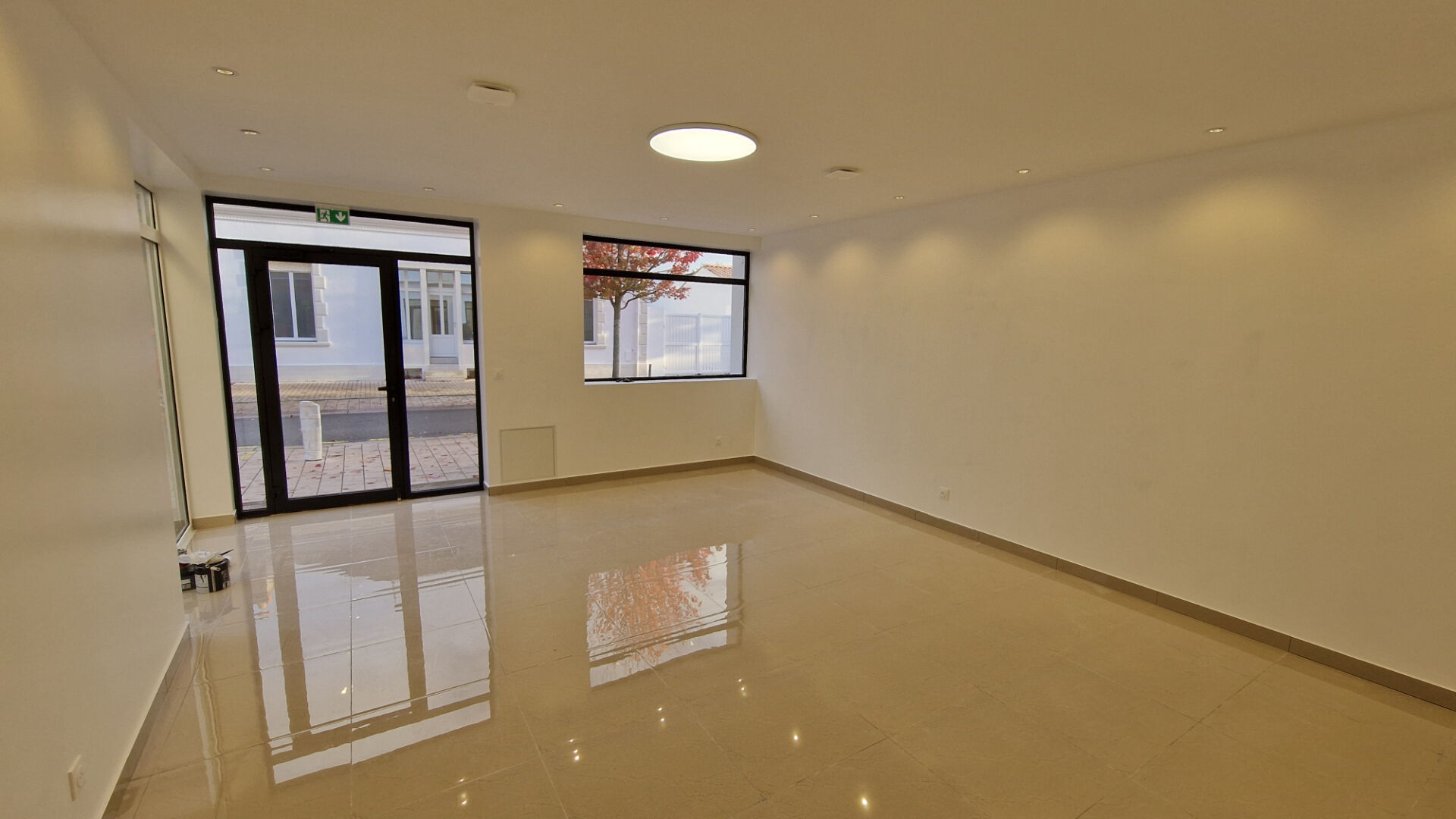 Un local commercial d'environ 50 m² comprenant un espace d'accueil, un bureau, une salle de bains et un W.C