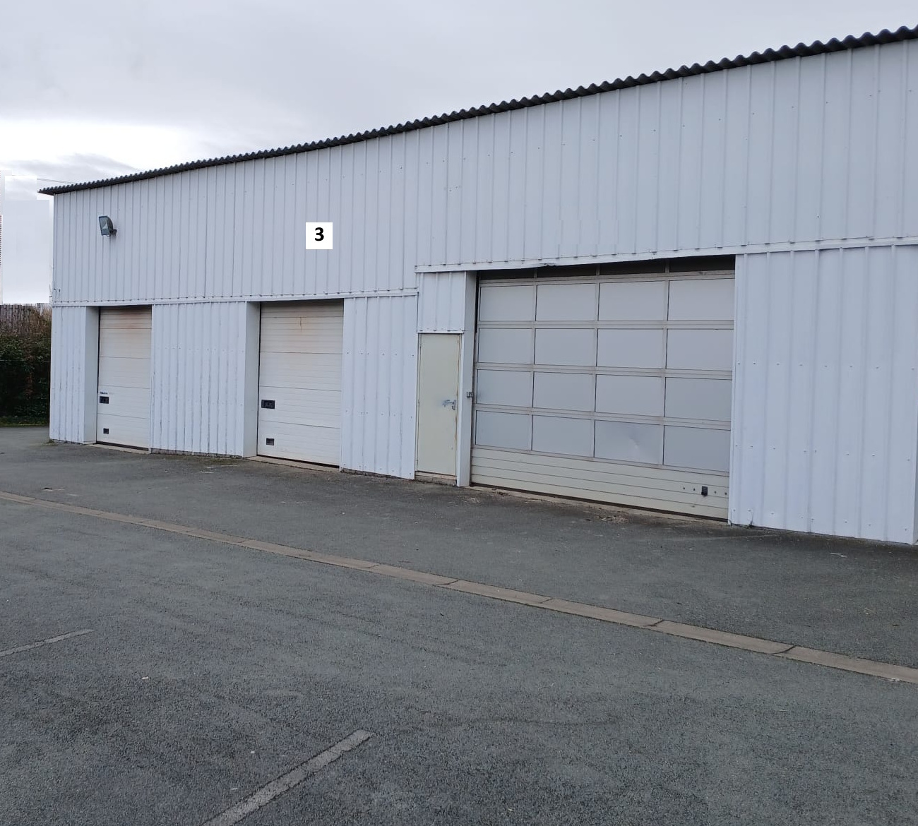 - cellule (no3B) : 46 m2 avec porte sectionnelle, sanitaires, compteurs électricité et eau indépendants. Accès PMR, grand parking.