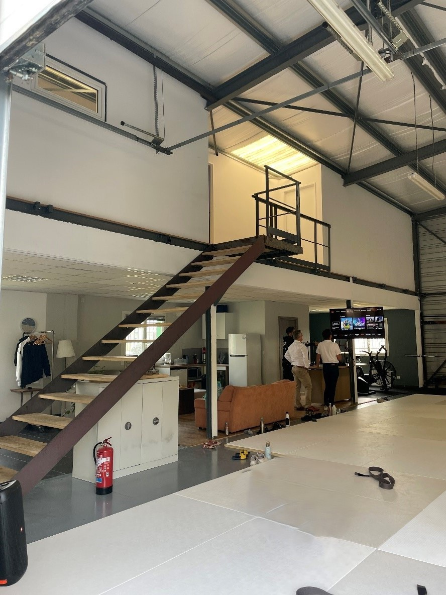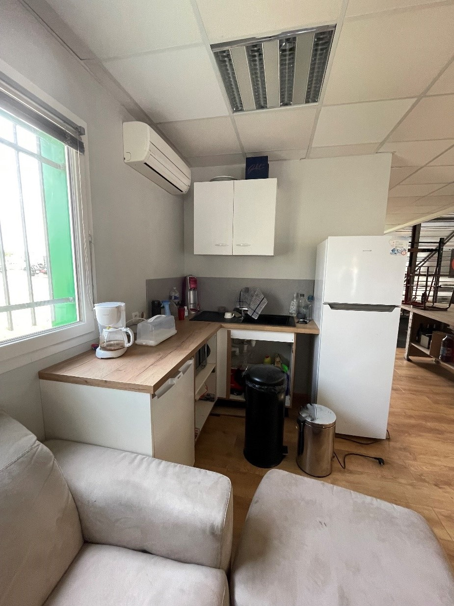 Bâtiment neuf comprenant un espace de stockage avec porte sectionnelle (2,5 x 3 m), hauteur libre de 3 m, et à l'étage, trois bureaux climatisés, éclairage LED, sol en parquet, volets roulants électriques espace d'aisance. Petit plus : une vue sur le...