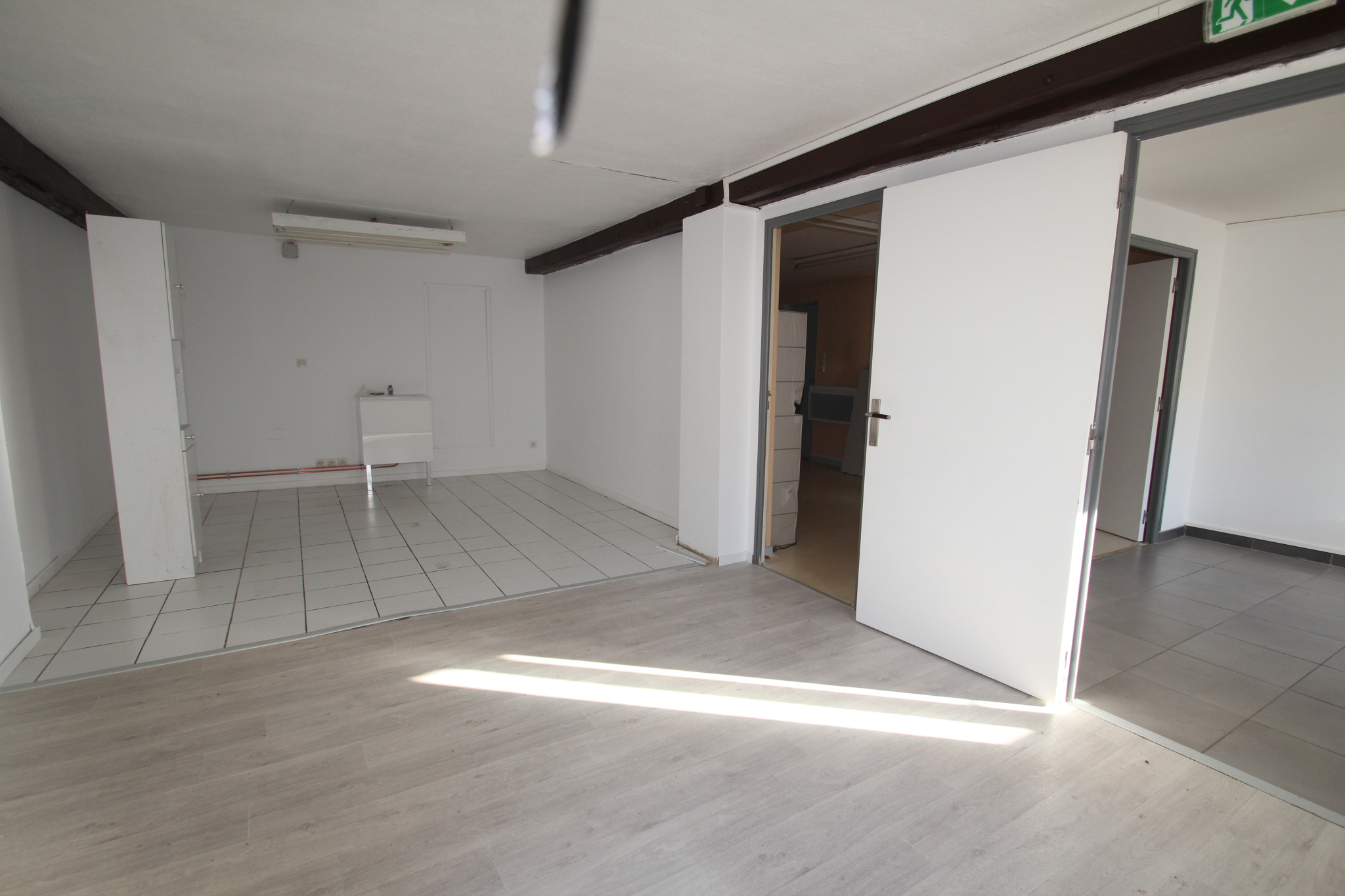 ref 1797- A louer au coeur du centre ville, grand local professionnel ou commercial comprenant un bel espace d'acceuil / bureau / d'exposition d'envrion 70 m2, deux grands bureaux lumlineux, reserves et sanitaires, soit 100 m2 environ de plain p...