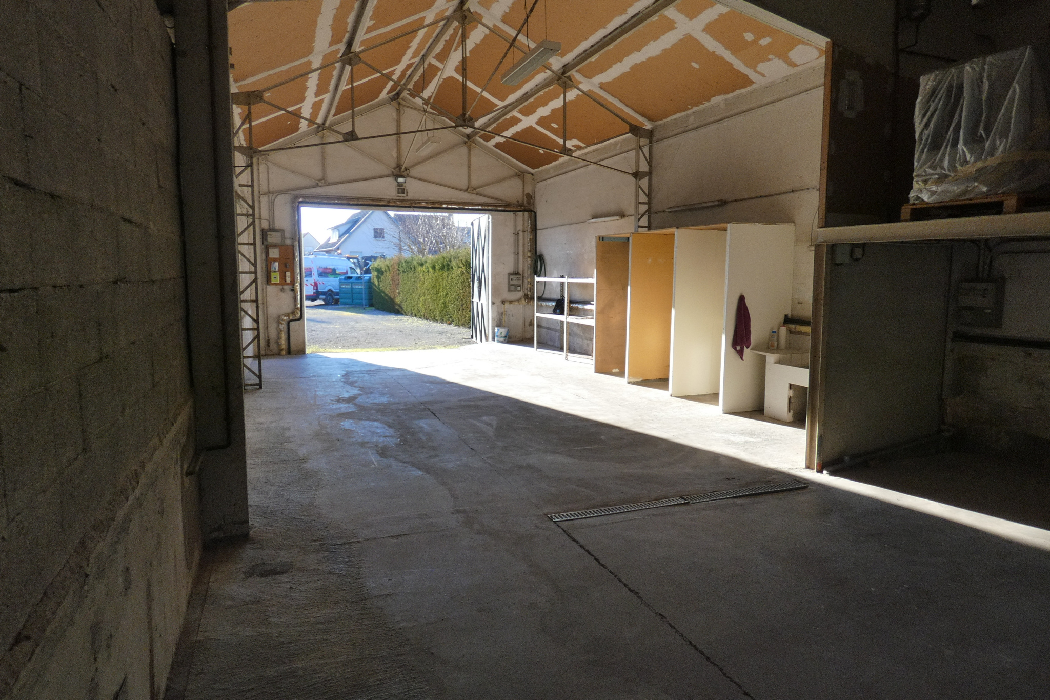Beaune, quartier Lycée Marey, bâtiment d'environ 91 m2 en bordure de rue avec cour privative. Accès par une porte à deux battants de 3 m de haut X 4 m de largeur, une pièce sur un sol ciment d'une profondeur d'environ 14,8 m X 5,98 m de largeur....