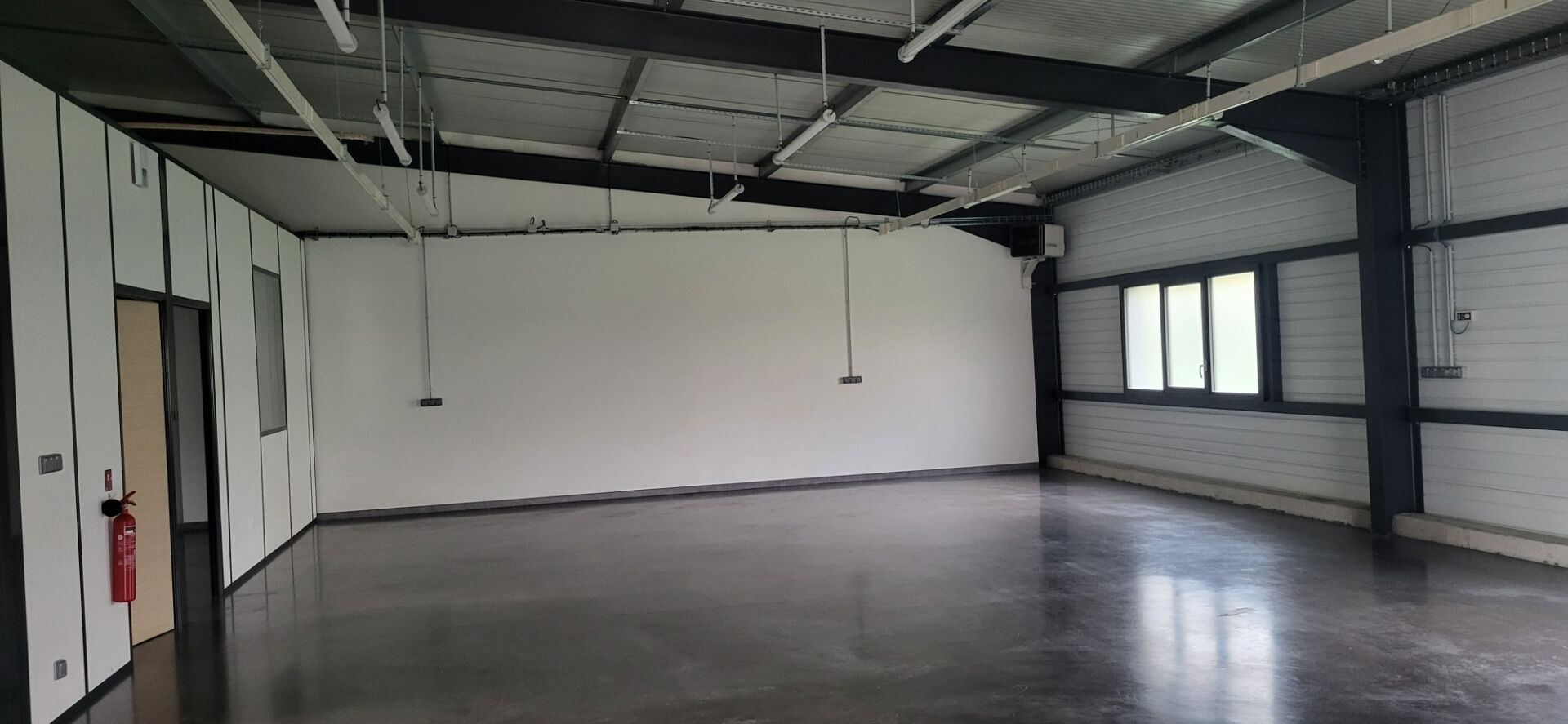 L'agence Aa Progimmo loue sur Verneuil sur Vienne -Mas des Landes -un local d'activité ou entrepôt de 305 m2 avec porte sectionnelle , bureaux cloisonnés , salle de repos avec kitchenette , sanitaires PMR et baie de brassage