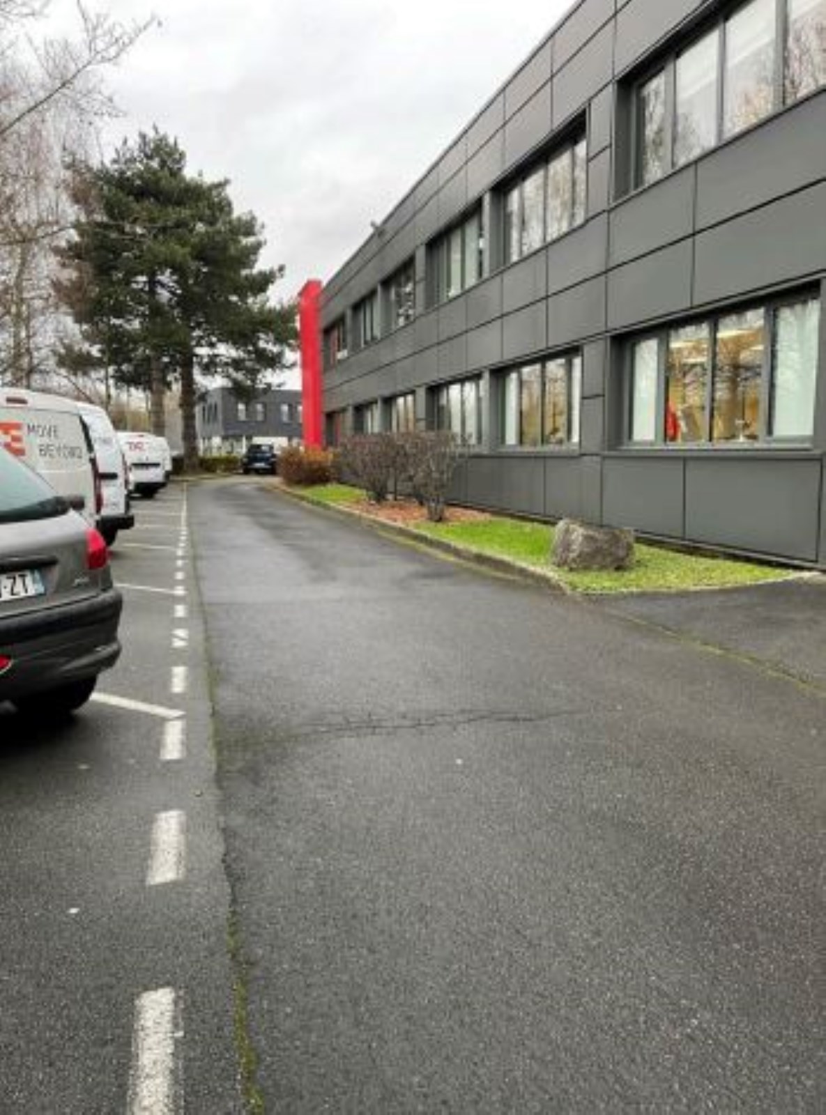 Bureaux aménagés et places de parking disponibles avec la surface, à proximité des axes autoroutiers.