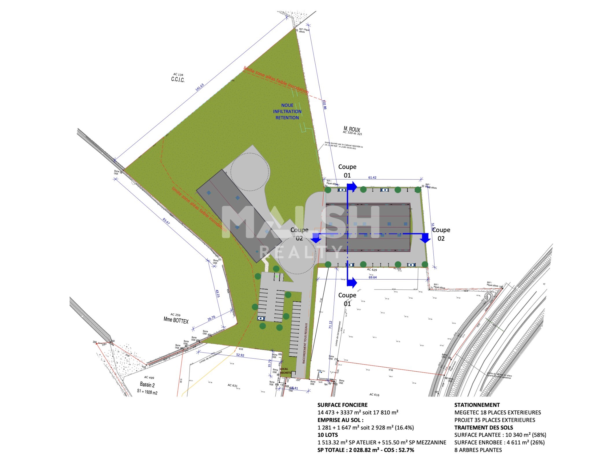 Nous vous proposons des lots au sein d'un parc d'activités développant 5.416m² comprenant 18 ateliers de 4214 m² + 1 202 m2 de mezzanine