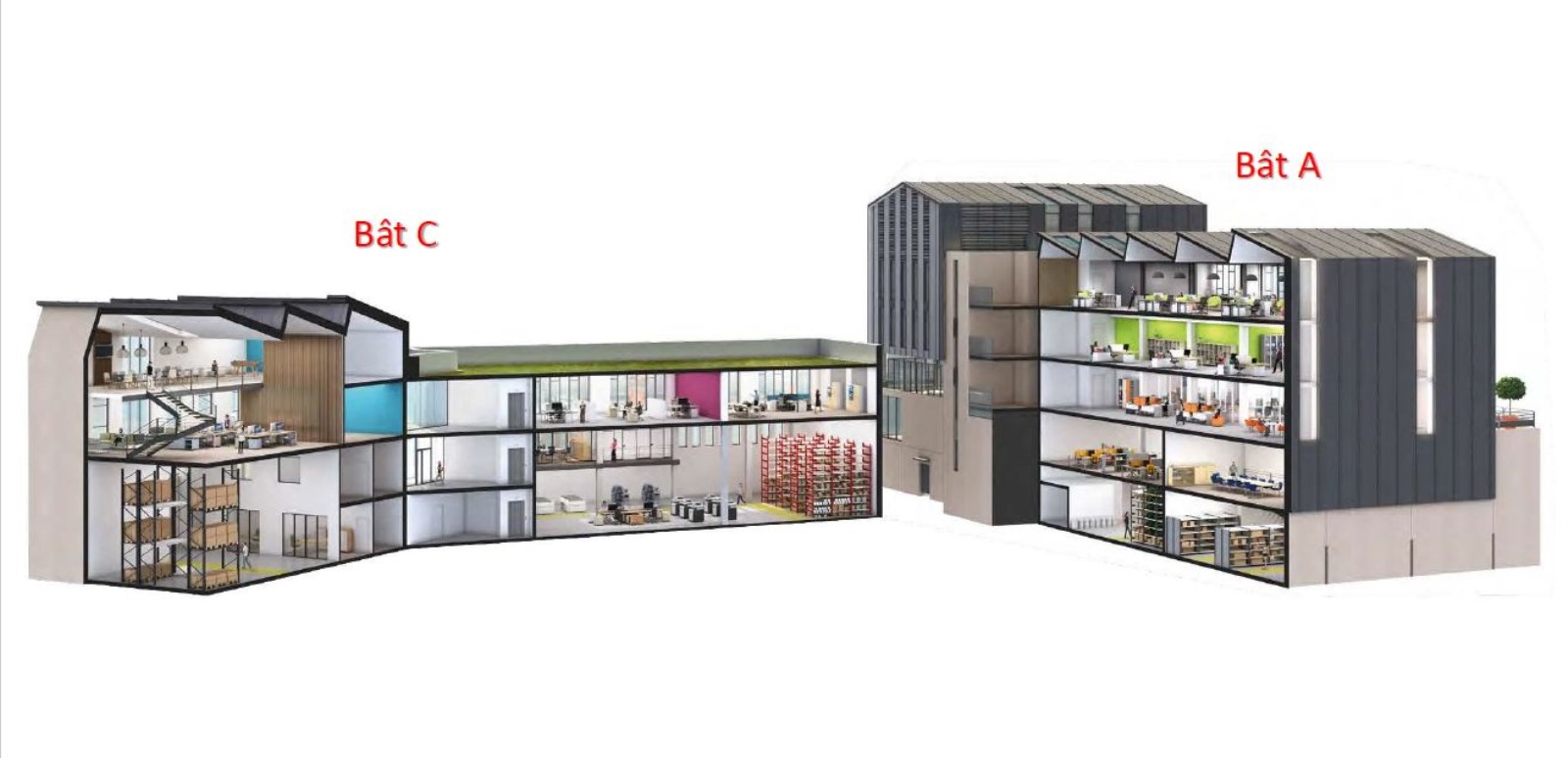 Il comprend 447 m² d'activités, 175 m² de bureaux, une mezzanine...