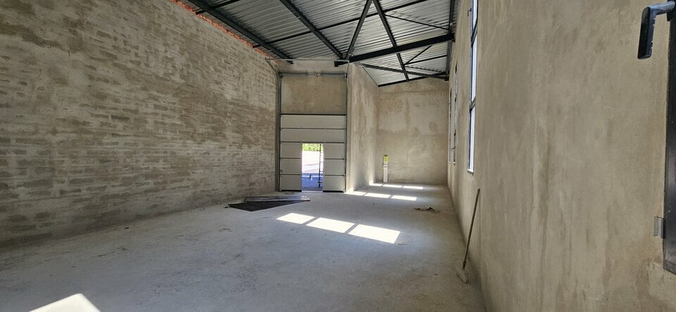 Hauteur sous plafond 3,30 m, coin sanitaires, électricité accès en voiture.