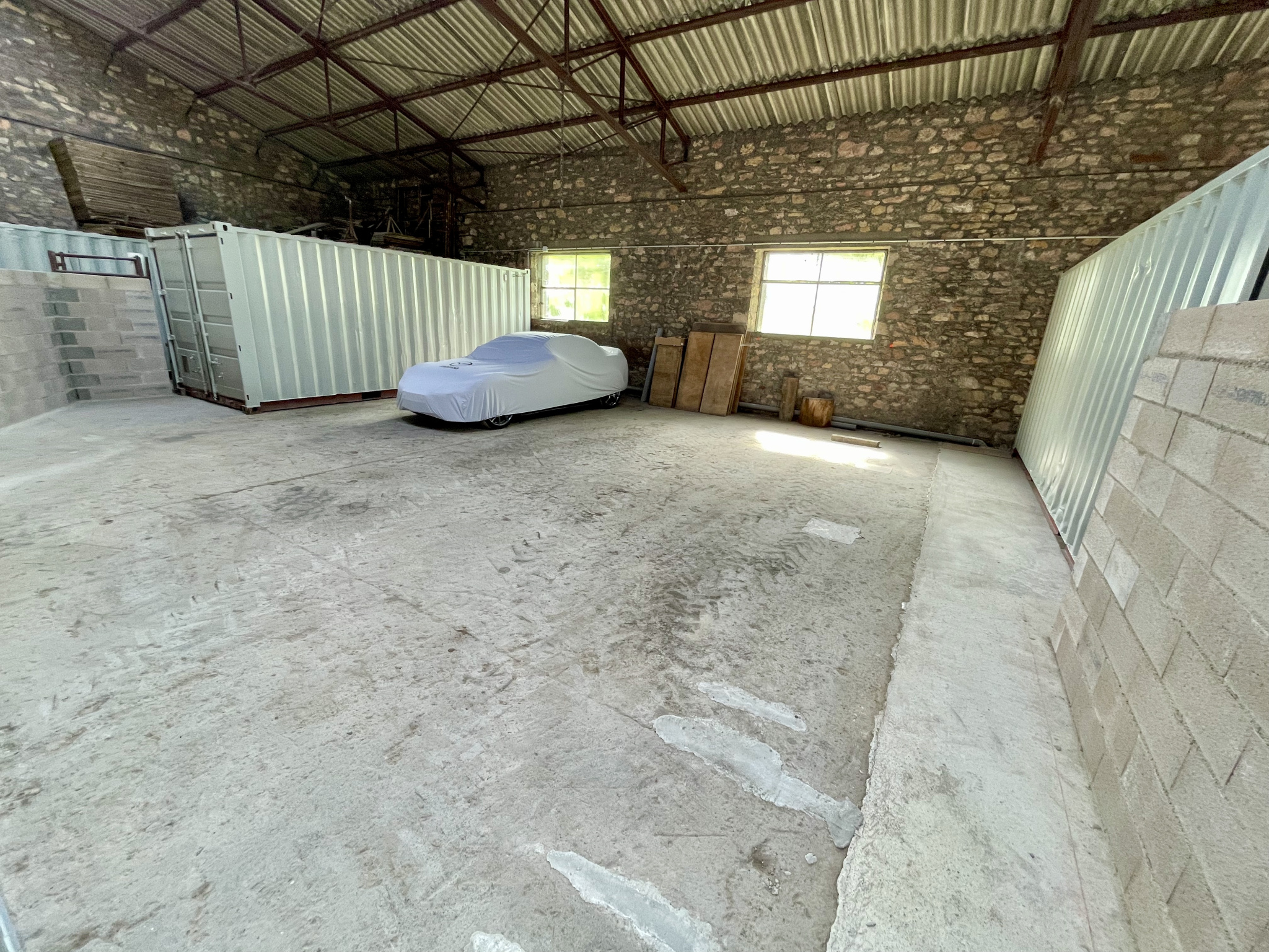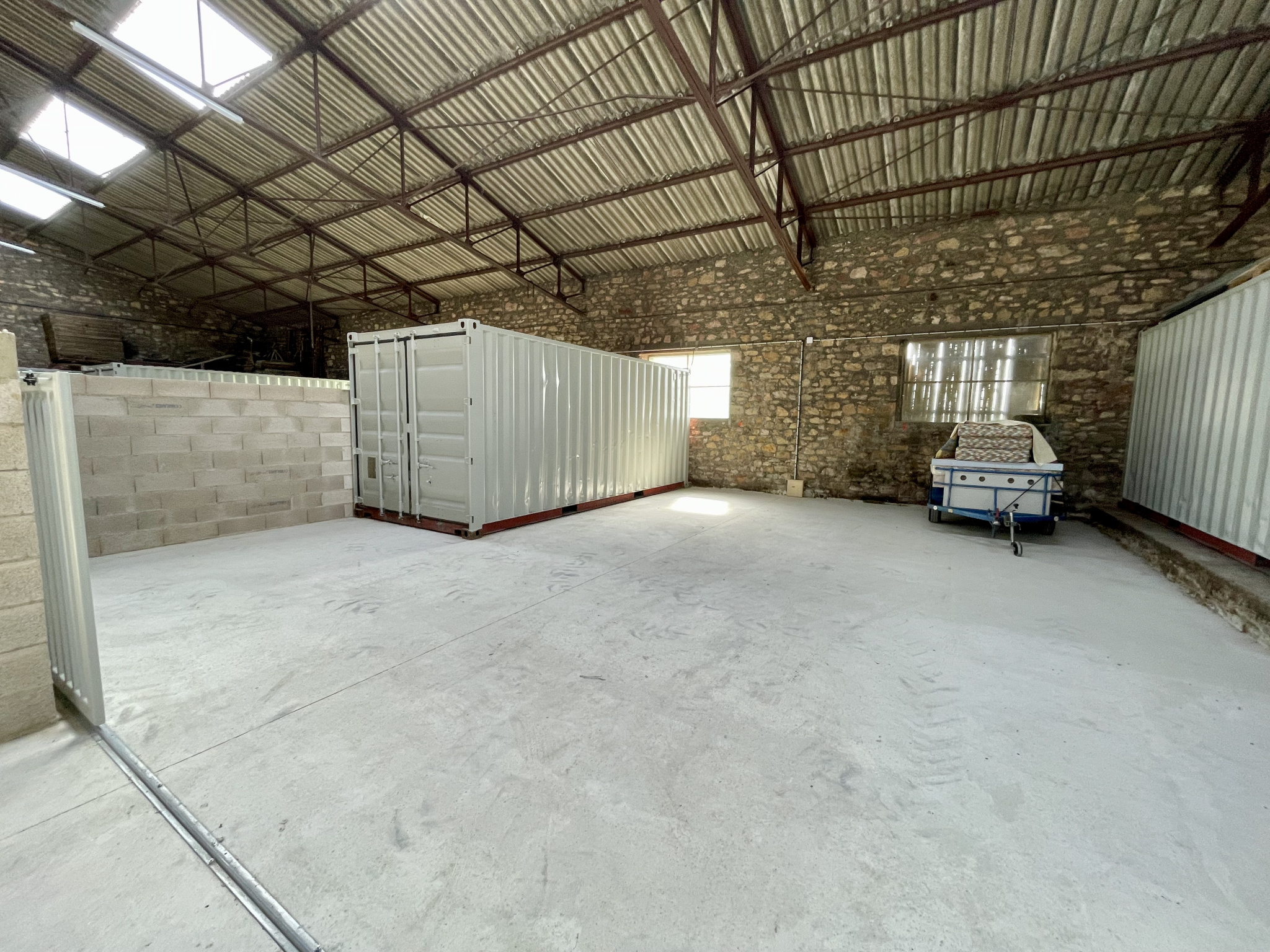 Situés à 5 minutes de Rodez, dans un entrepot avec grande hauteur, espaces de stokage fermés avec grand portail, comprenant un container de 10m2 avec électricté. Facilité d'accés.