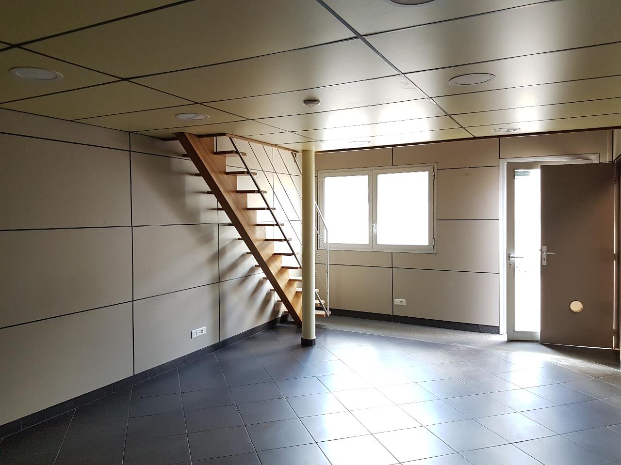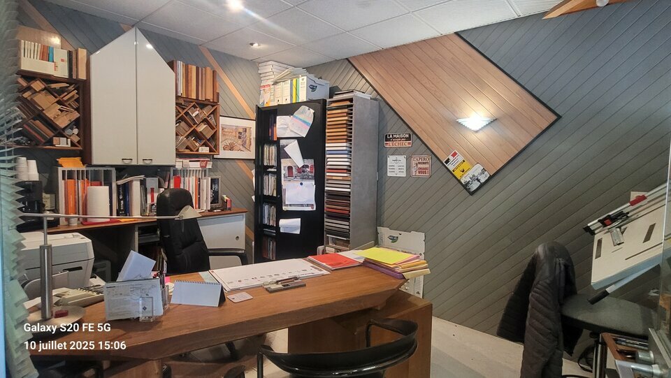 Dans un ensemble plus vaste, un local d'activités/artisanal d'environ 95 m², comprenant :- un grand bureau d'accueil de 27 m², à la suite un réfectoire ; et à l'étage, un grand bureau de 21 m² au sol, mansardé + WC, douche et lavabo.