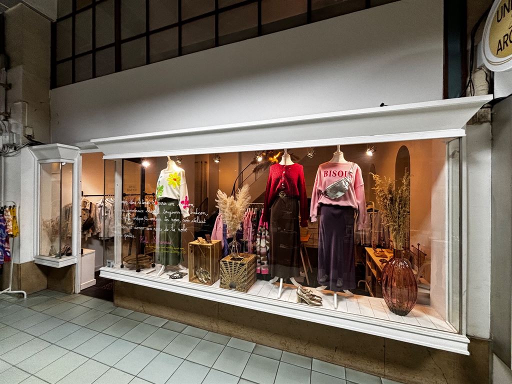Beau local commercial sans droit au bail sur deux niveaux situé à Clermont-Ferrand, dans le Grand Passage rue Blatin, d’environ 45 m2, grande vitrine, lieu très passant à deux pas de la place de Jaude.