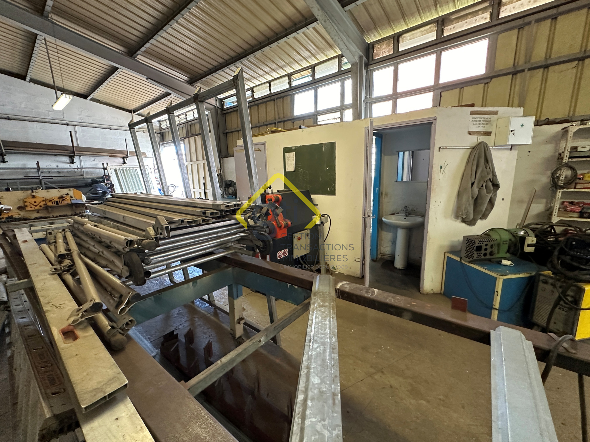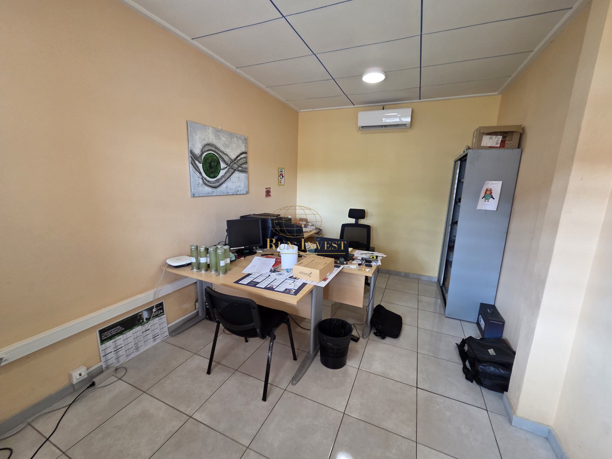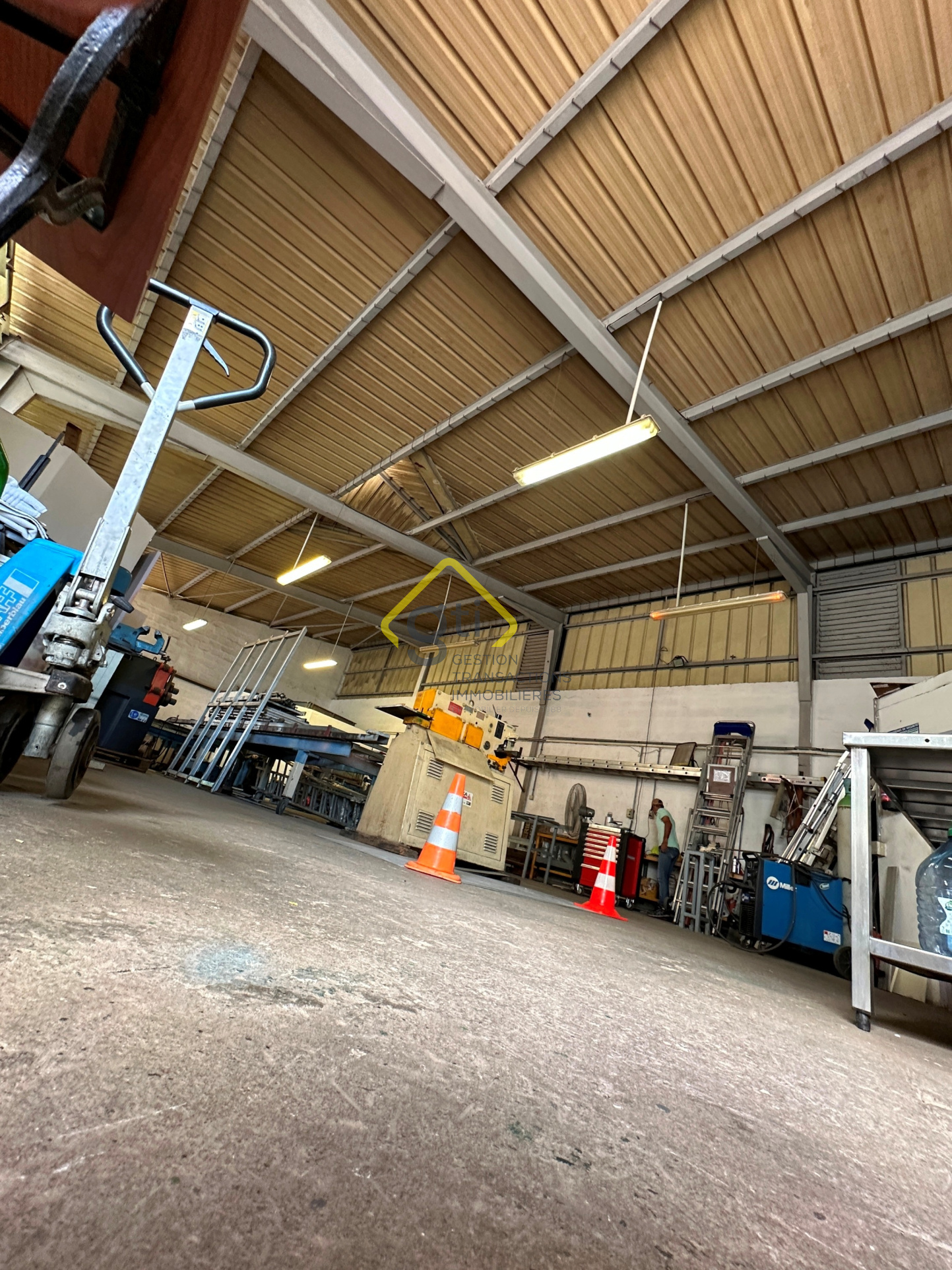 Les aménagements actuelles permettent une zone de stockage ou de bureaux de 40m2 - un accueil - un bureau de direction au RDC - A l'étage 3 grand bureaux, une cuisine, une ter...