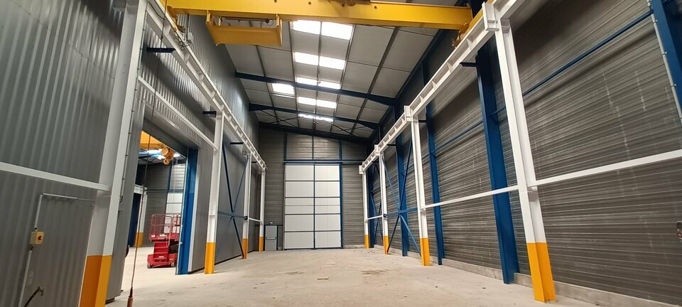 Au c?ur d'une ZA, dans un ensemble plus vaste, un bâtiment neuf (2024) d'environ 810 m², construit en bardage métallique double peau, charpente métallique et toiture isolée bac acier.Le local est équipé d'un pont roulant de 5 T et dispose de 4 a...