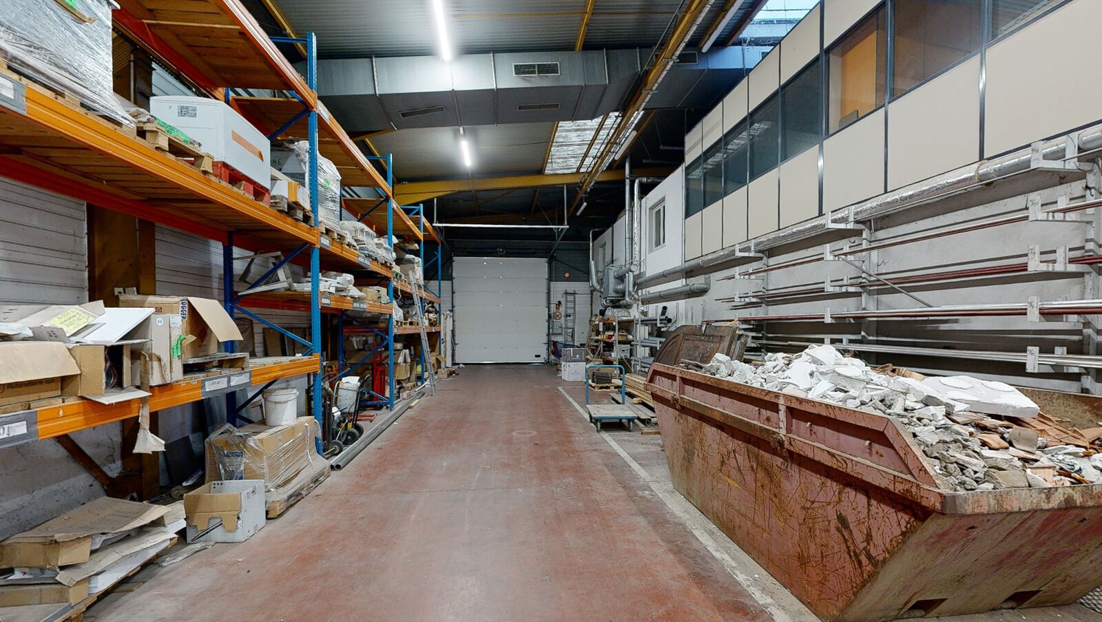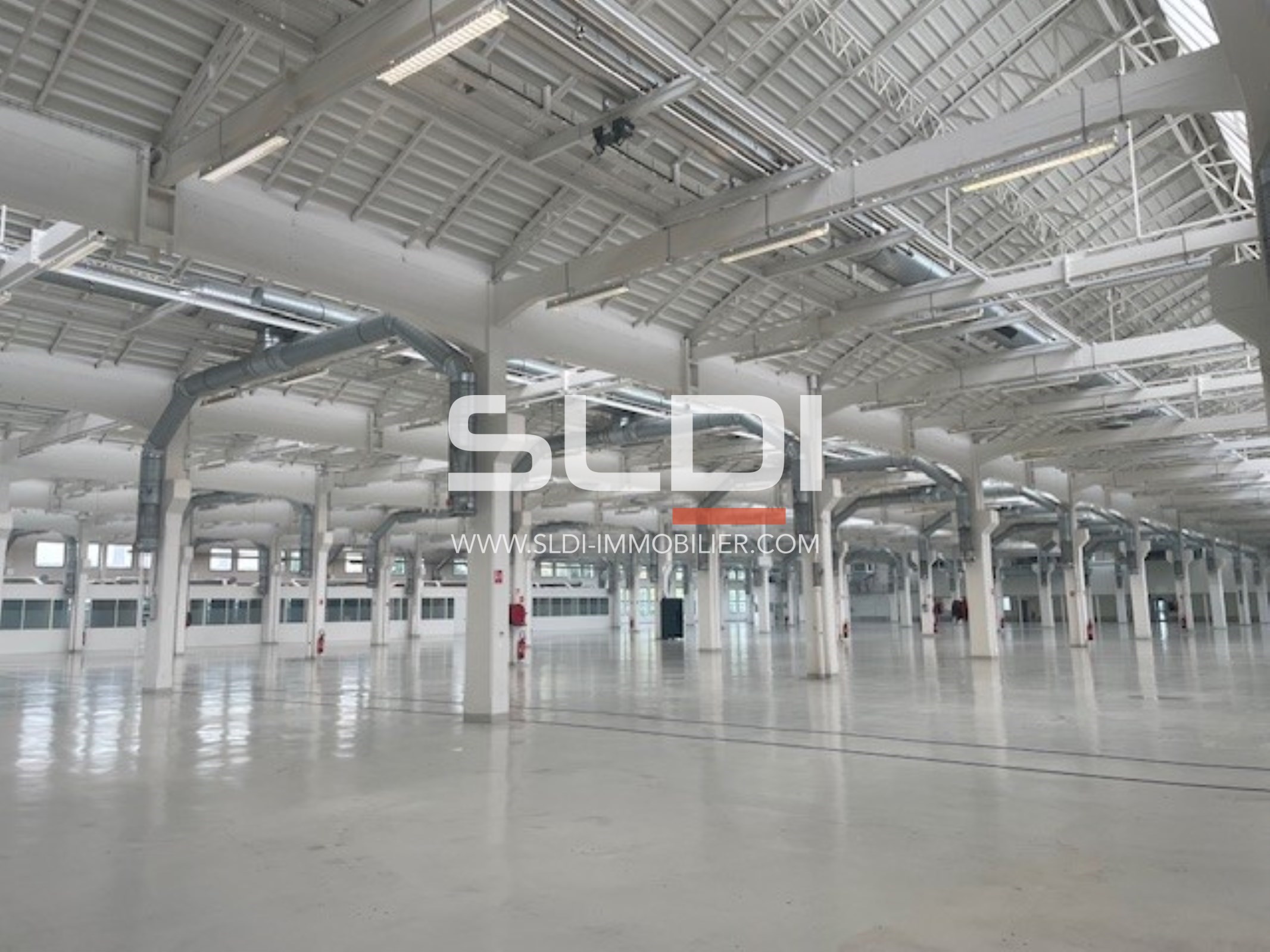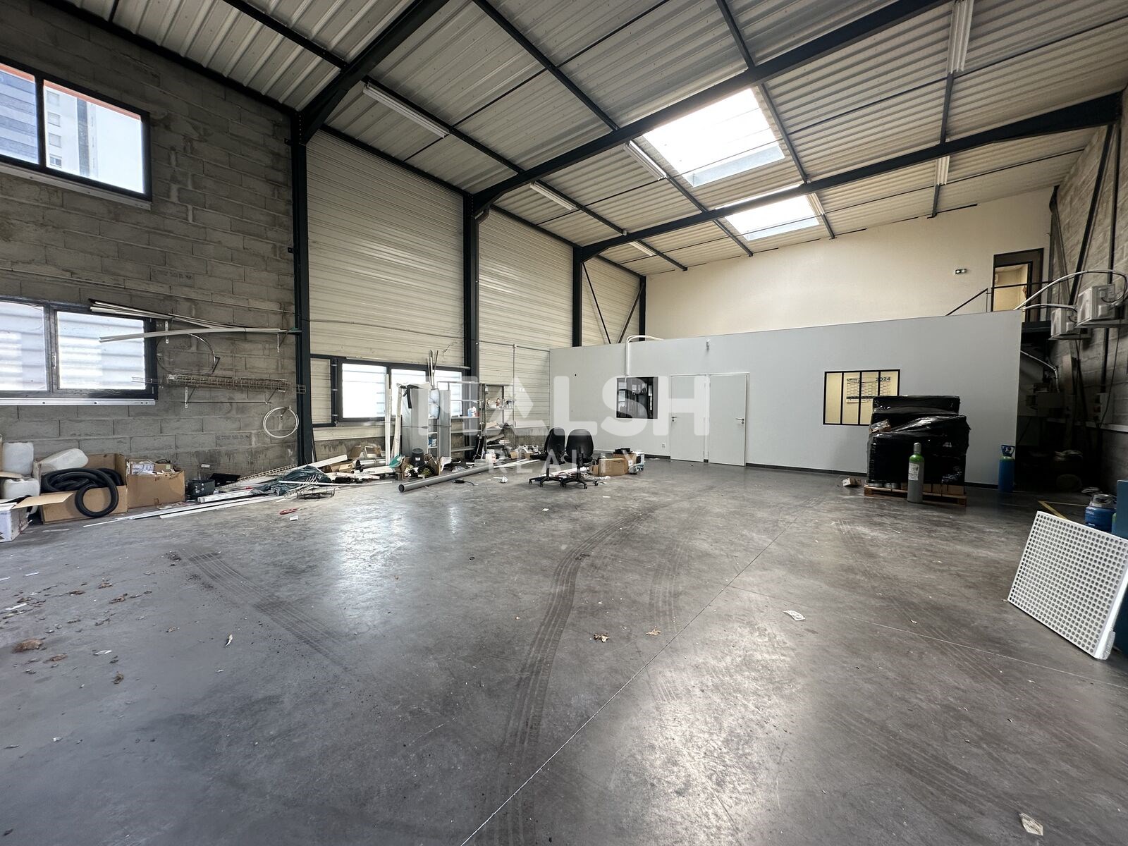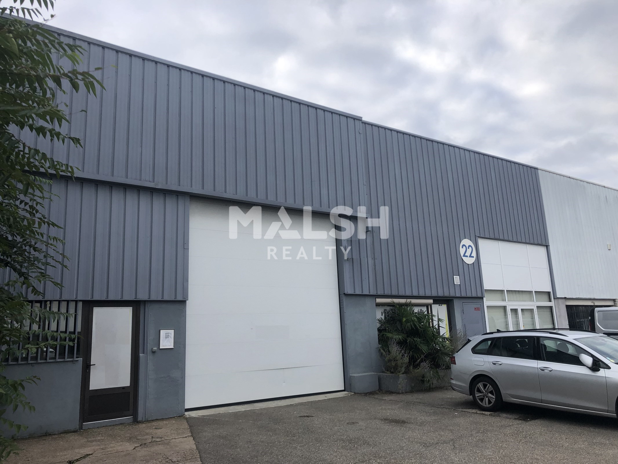 Il comprend un hall de 1 030m² équipé de RIA avec porte sectionnelle, 2 bureaux en façade d'environ 70m² et parking commun.