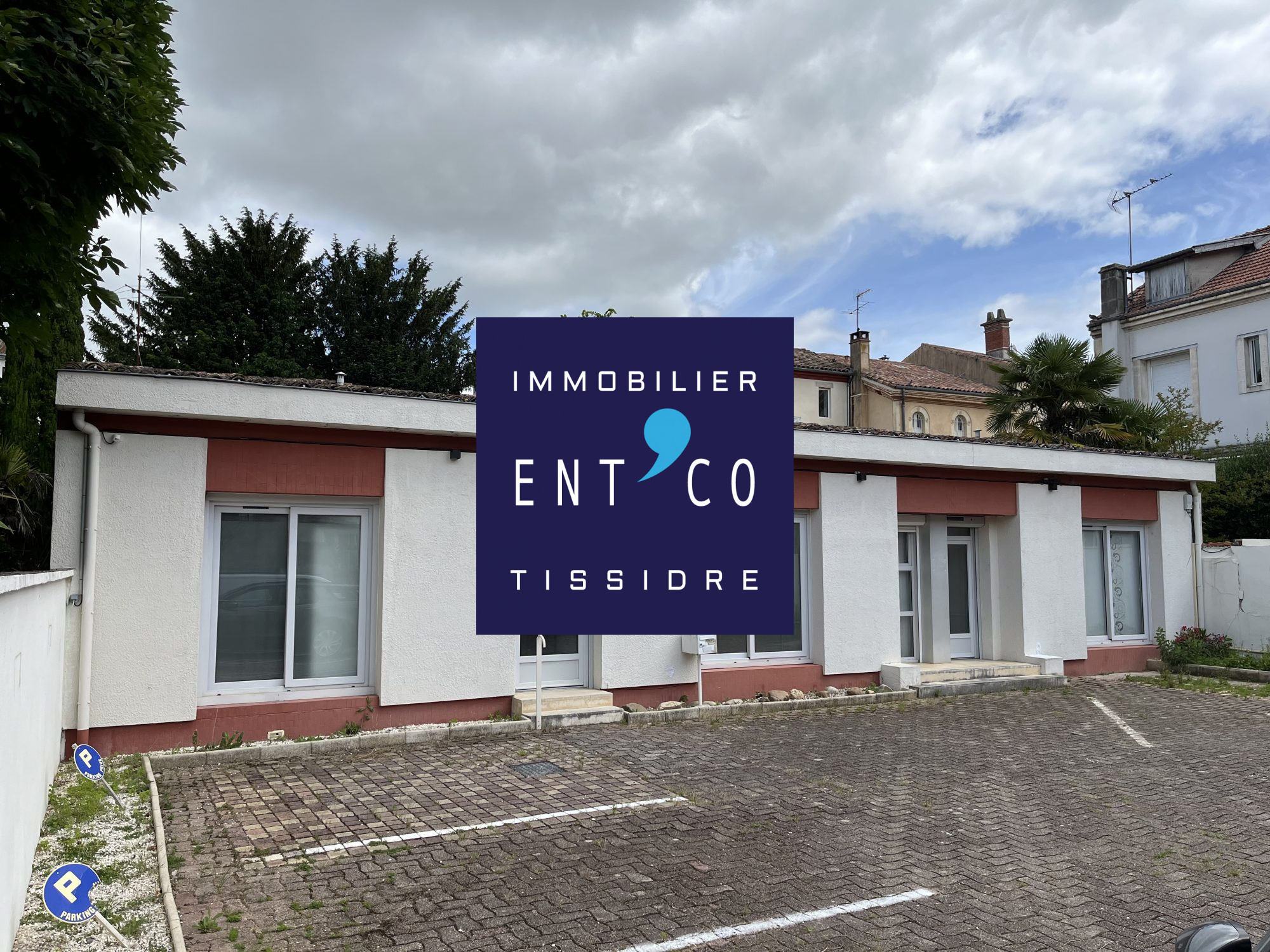 Agglomération d'Agen, rive gauche, sur la zone aéroportuaire, à louer bureaux de 254 m² composé de Accueil, 6 bureaux, 2 salles de réunion, salle de pause avec cuisine, salle archives et toilettes. Parking gratuit de plus de 20 places, jardin privatif. En...