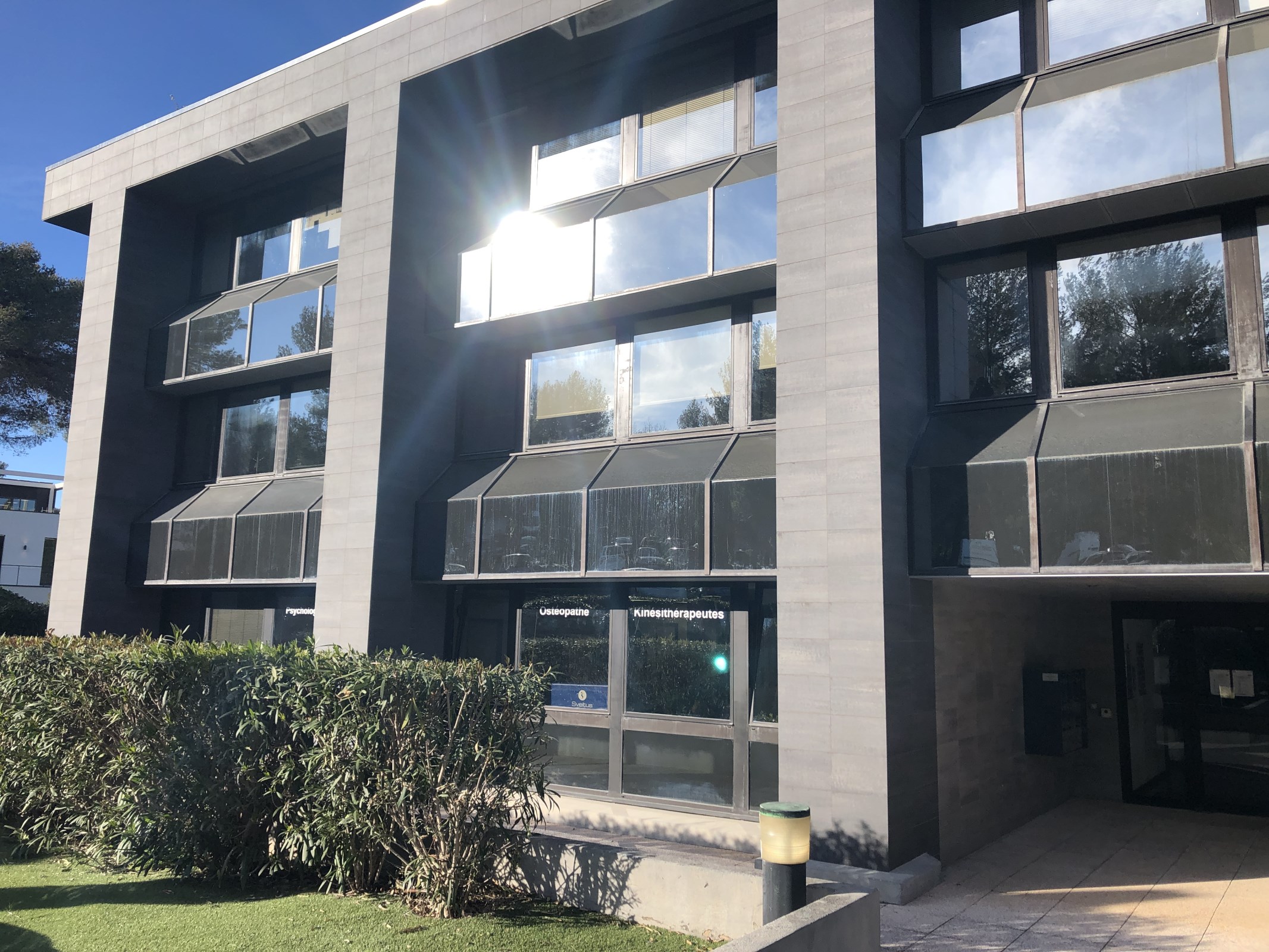 Au sein d'un immeuble indépendant en R+2 situé quartier St Philippe, sur la technopole de Sophia, à louer bureaux aménagés d'une surface d'environ 249 m².