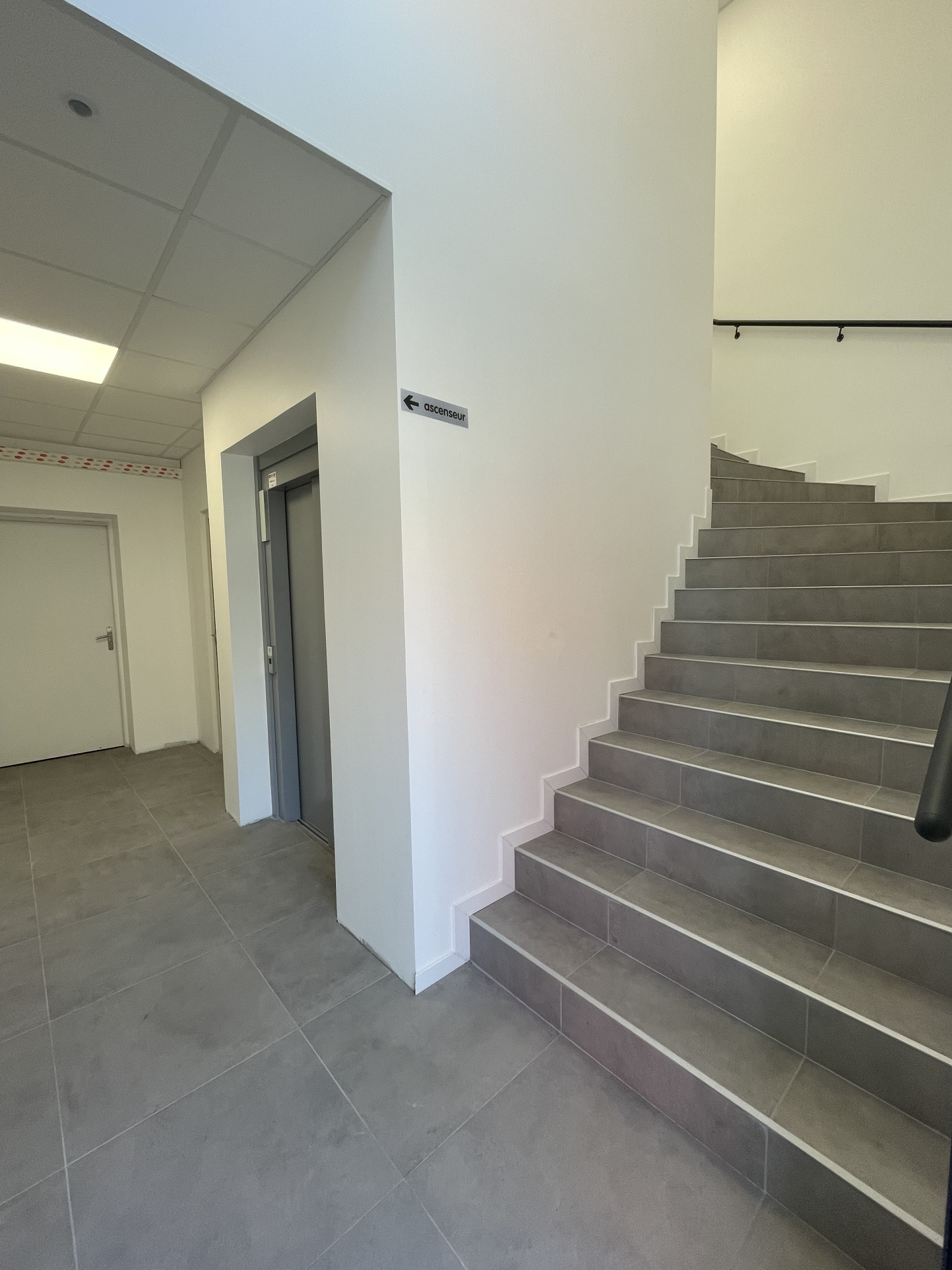 A proximité des grandes enseignes, à 3 minutes en voiture du grand distributeur Auchan, dans un bâtiment neuf en R+2, à louer, au 1er étage avec ascenseur, un local de 70m2.
