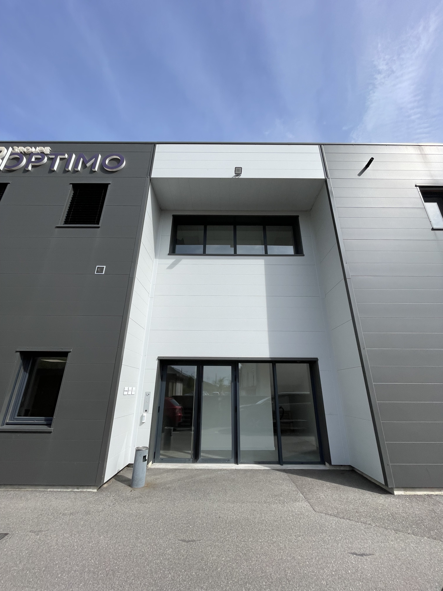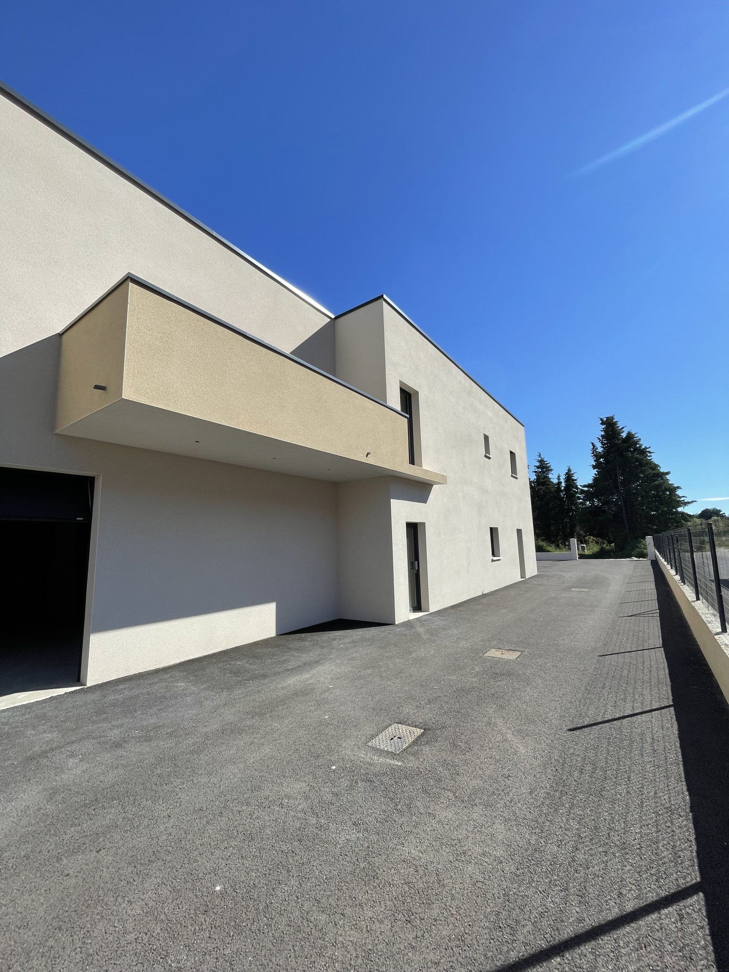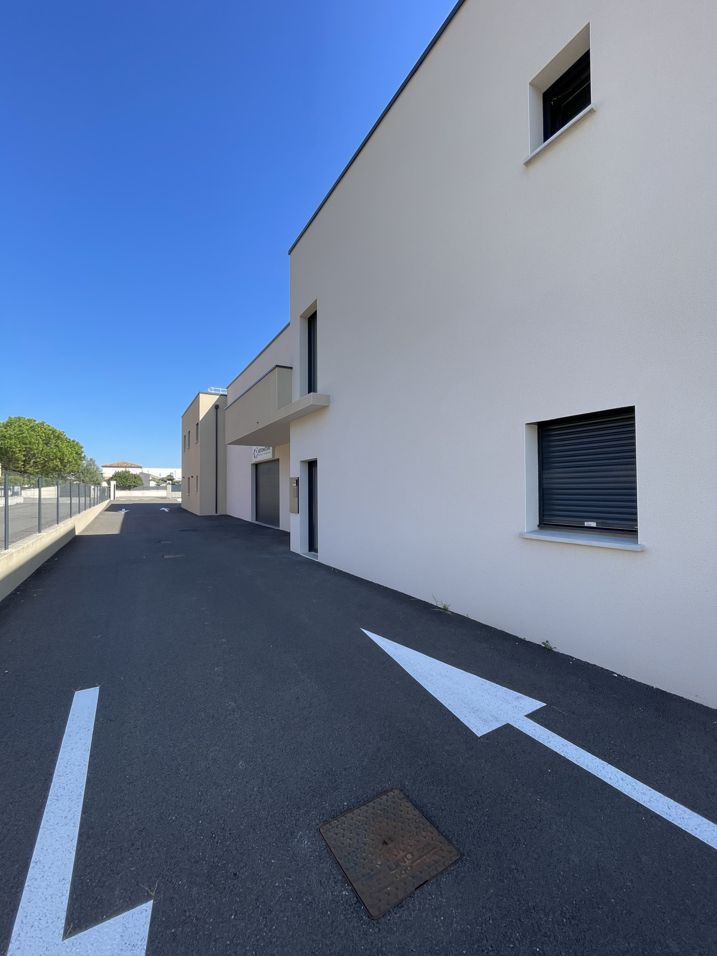 Terrain clos, places de stationnement en façade du bâtiment sur terrain privé, portail él...
