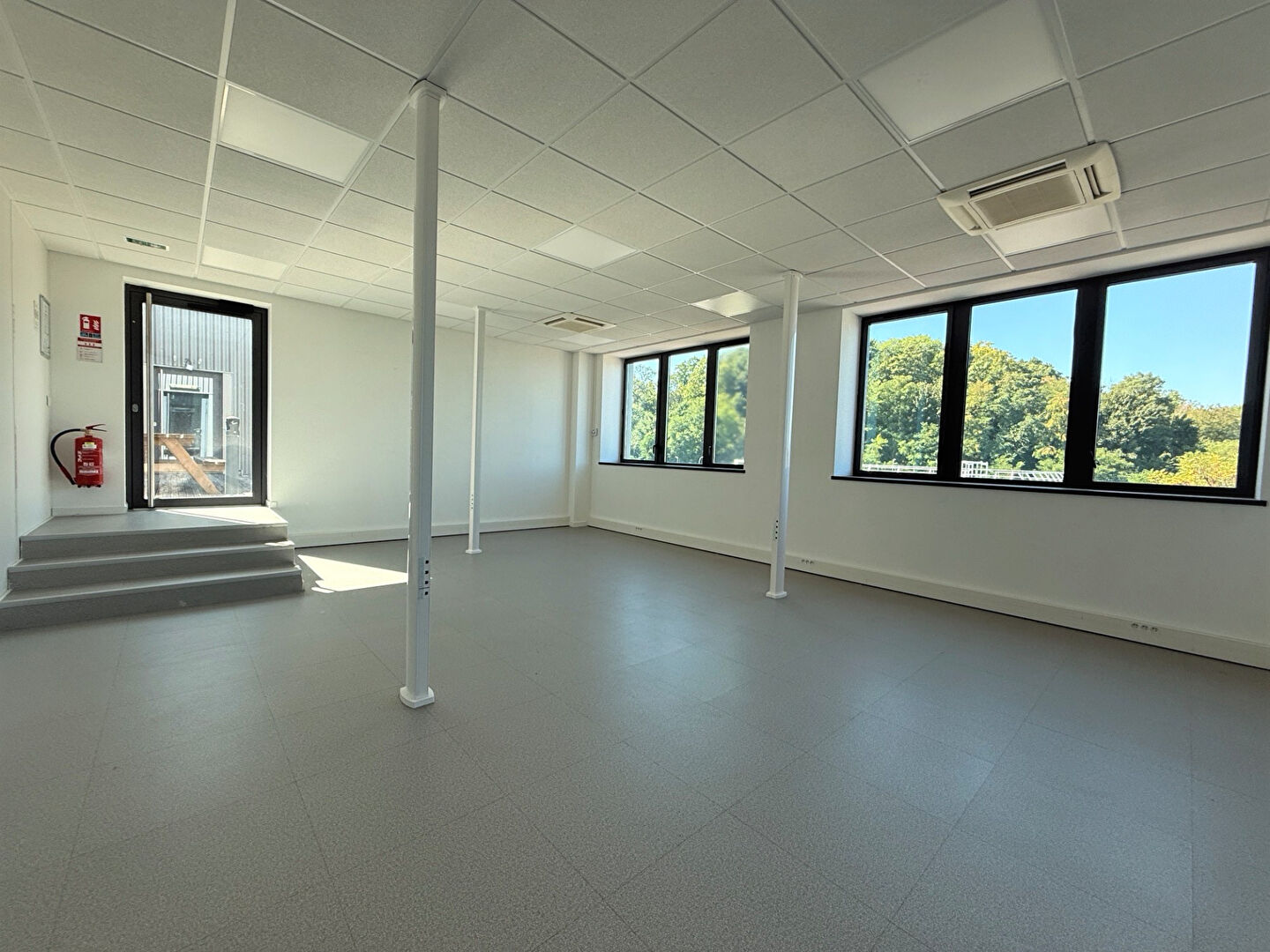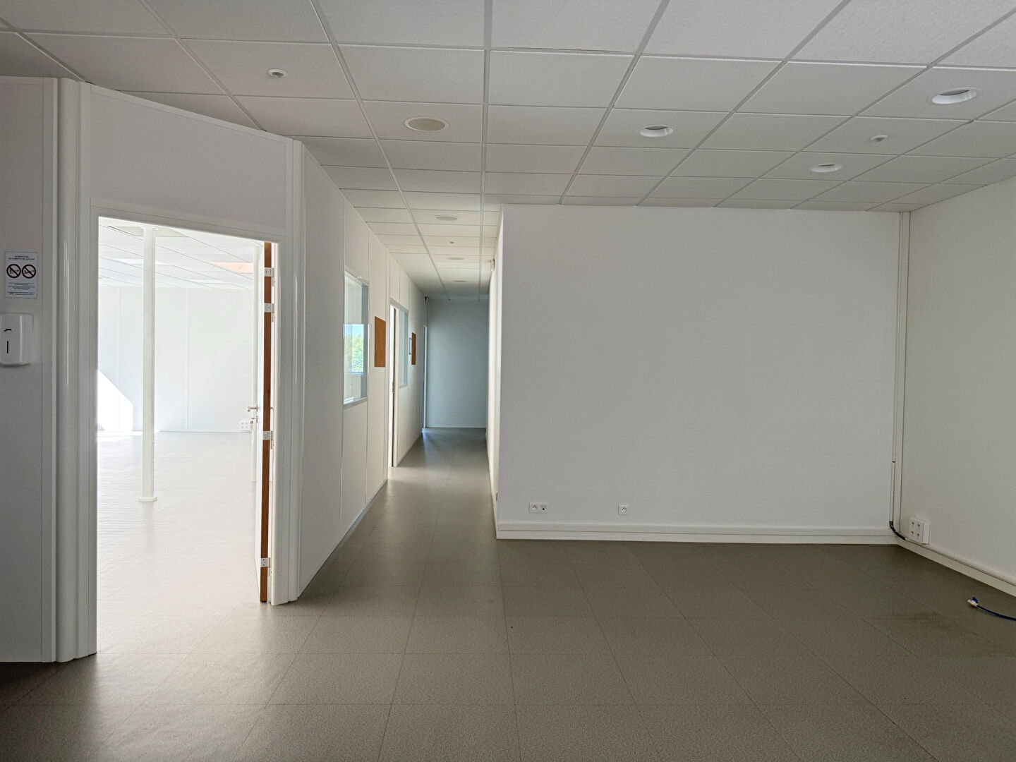 Sol thermoplastique, faux plafond avec luminaire LED, climatisation réversible, sanitaires privatifs, cloisons intér...