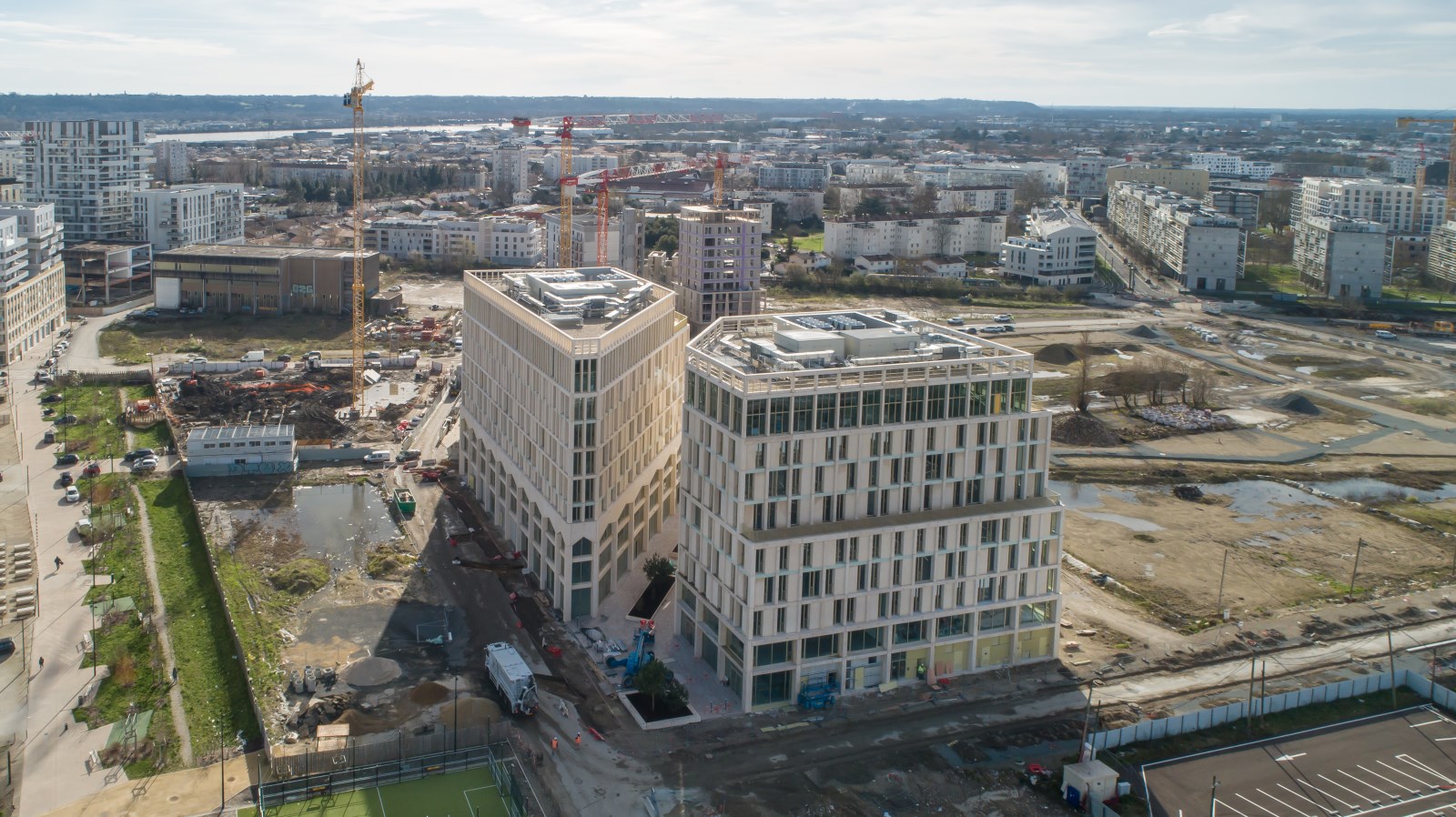 Dans le quartier EURATLANTIQUE à Bordeaux, opération emblématique neuve de 16 000 m² environ sur deux bâtiments. L'immeuble propose de grands plateaux facilement aménageables et divisibles dont certains avec terrasse. Un local vélo avec douches et vestiai...