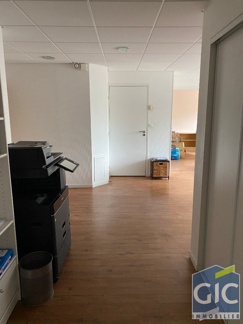 Au 1er étage d'un petit immeuble de bureaux, un plateau d'environ 75 m² (quote-part parties communes incluse), comprenant 3 bureaux.* Sanitaires communs.