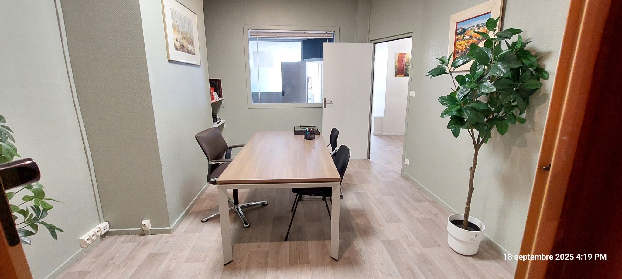 - hall d'entrée, une grande salle de réunion ou open space, 3 bureaux, un espace repas avec cuisine équi...