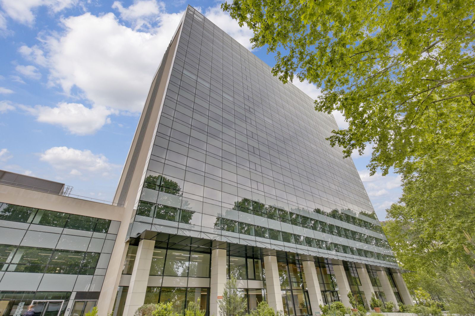 Bureaux à louer au pied de la dalle de la Défense, dans un immeuble à taille humaine à 5 minutes à pied du métro Esplanade. Le RDC est dédié à un espace de services pour les utilisateurs et le hall comme les étages ont été totalement rénovés.