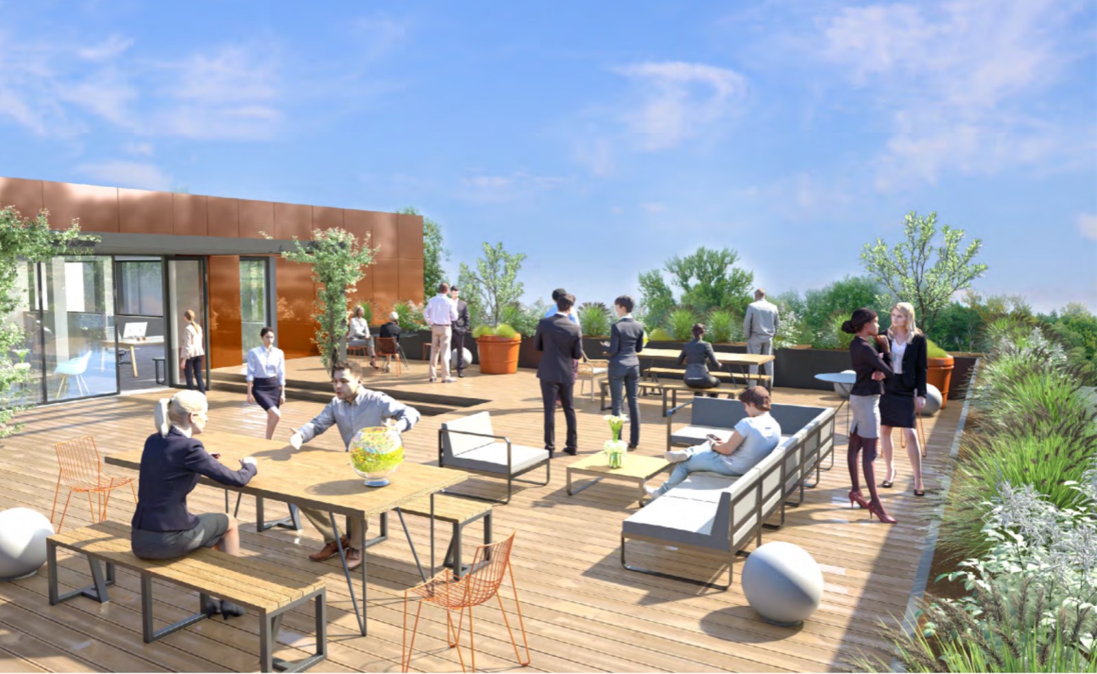 Cadre de travail verdoyant et prestations de qualité.