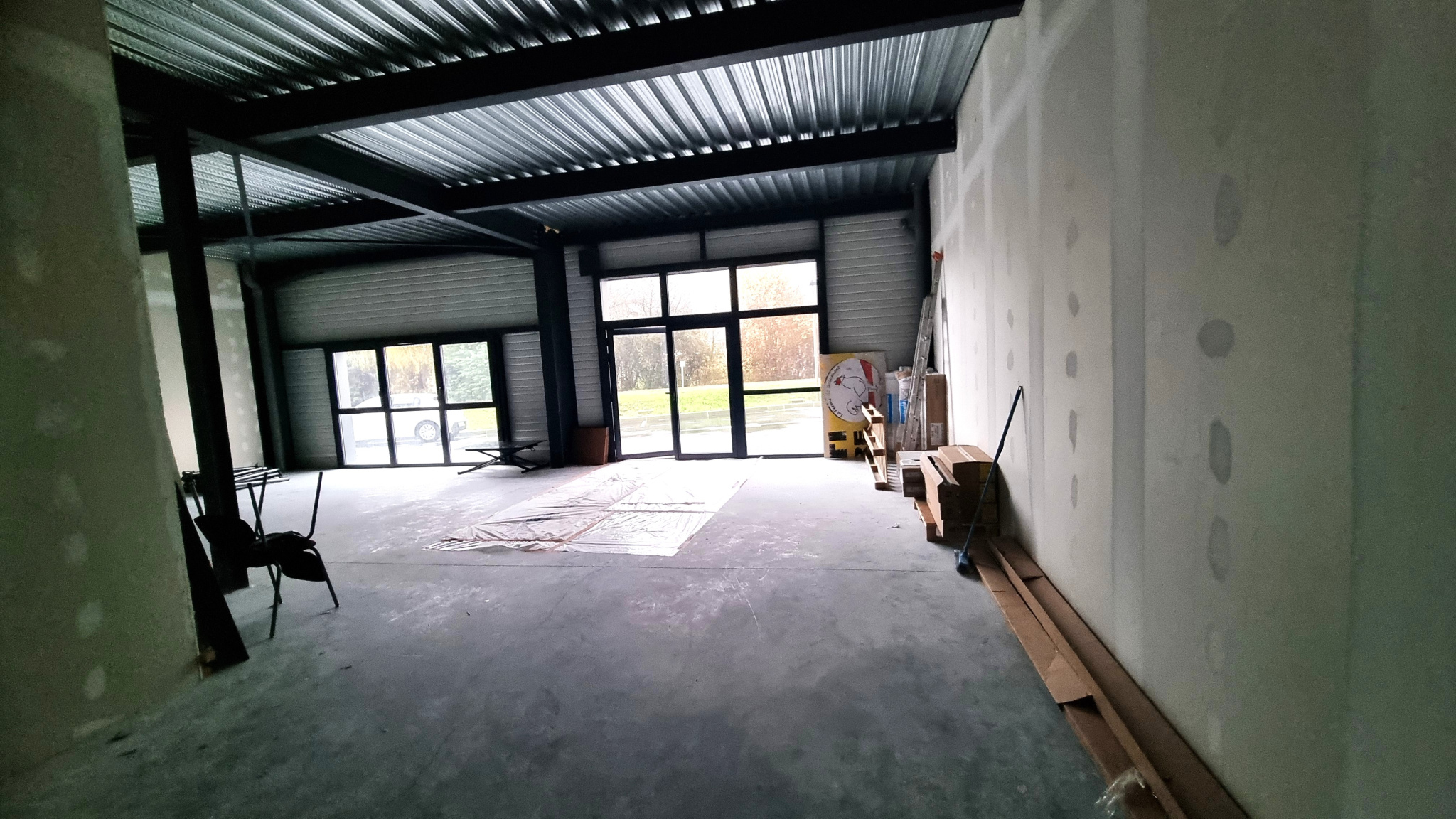 Les locaux se composent de deux espaces ouverts, un espace stockage sur l'arrière, et de deux sanitaires PMR privatifs. Idéal pour du show-room, avec belle visbilité depuis la route et stationnement facile. Le site est sécurisée pat un système de surveill...