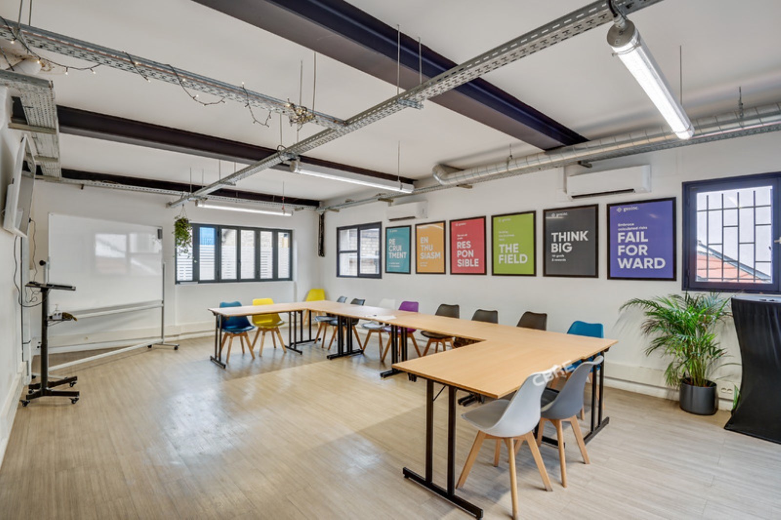 La surface de 438m² est entièrement rénovée selon une ligne esthétique industrielle. L'aménagement proposé allie open space, bureaux de direction, salles de ...