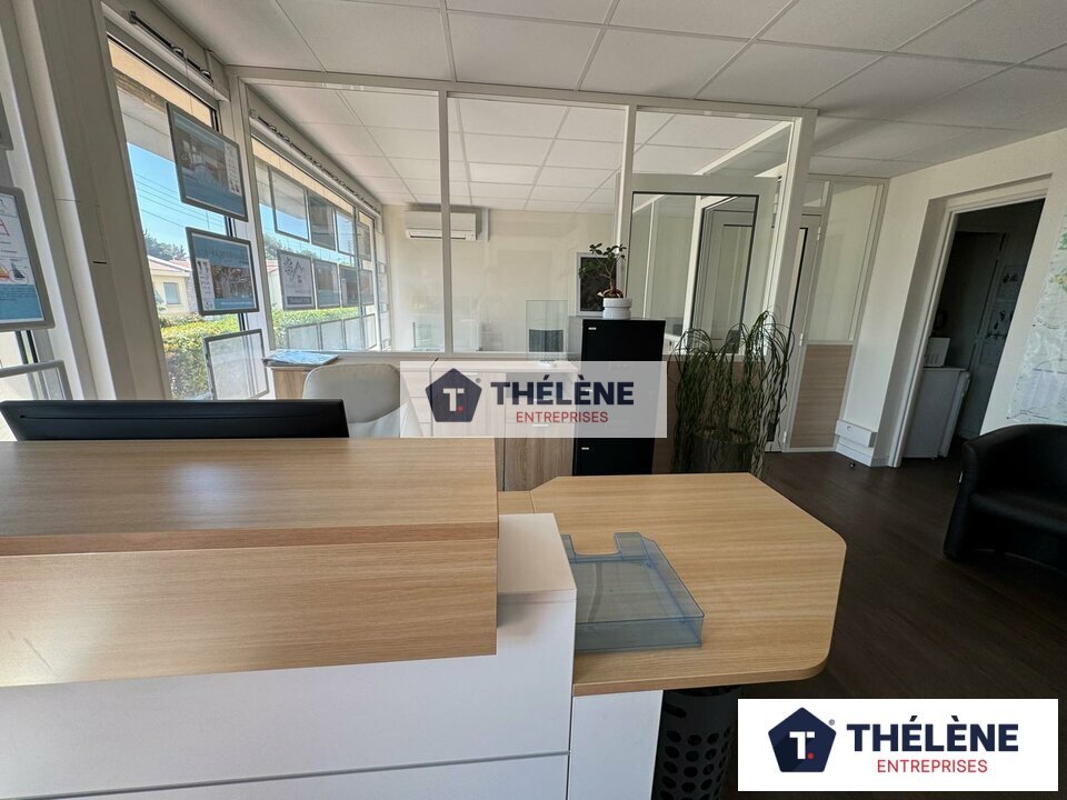 Thélène Entreprises vous propose à la location ces bureaux entièrement refaits à neuf d'environ 80 m², comprenant 3 bureaux cloisonnés, espace cuisine, salle d'eau ,jardin privatif et 1 terrasse, 2 places de parking privatives et nombreuses places di...