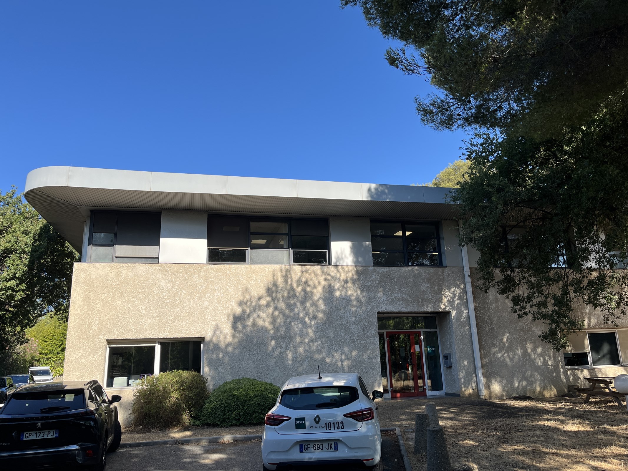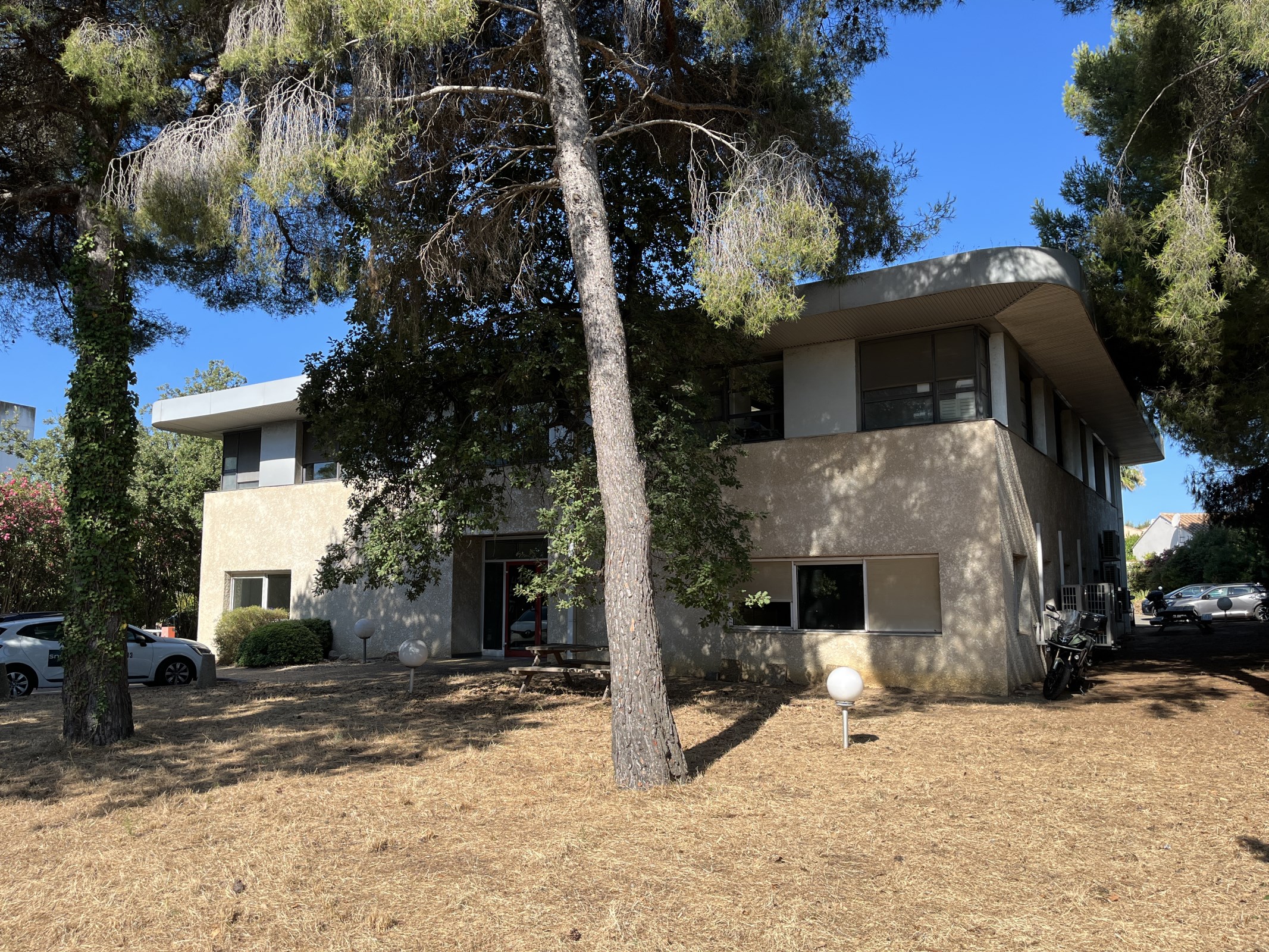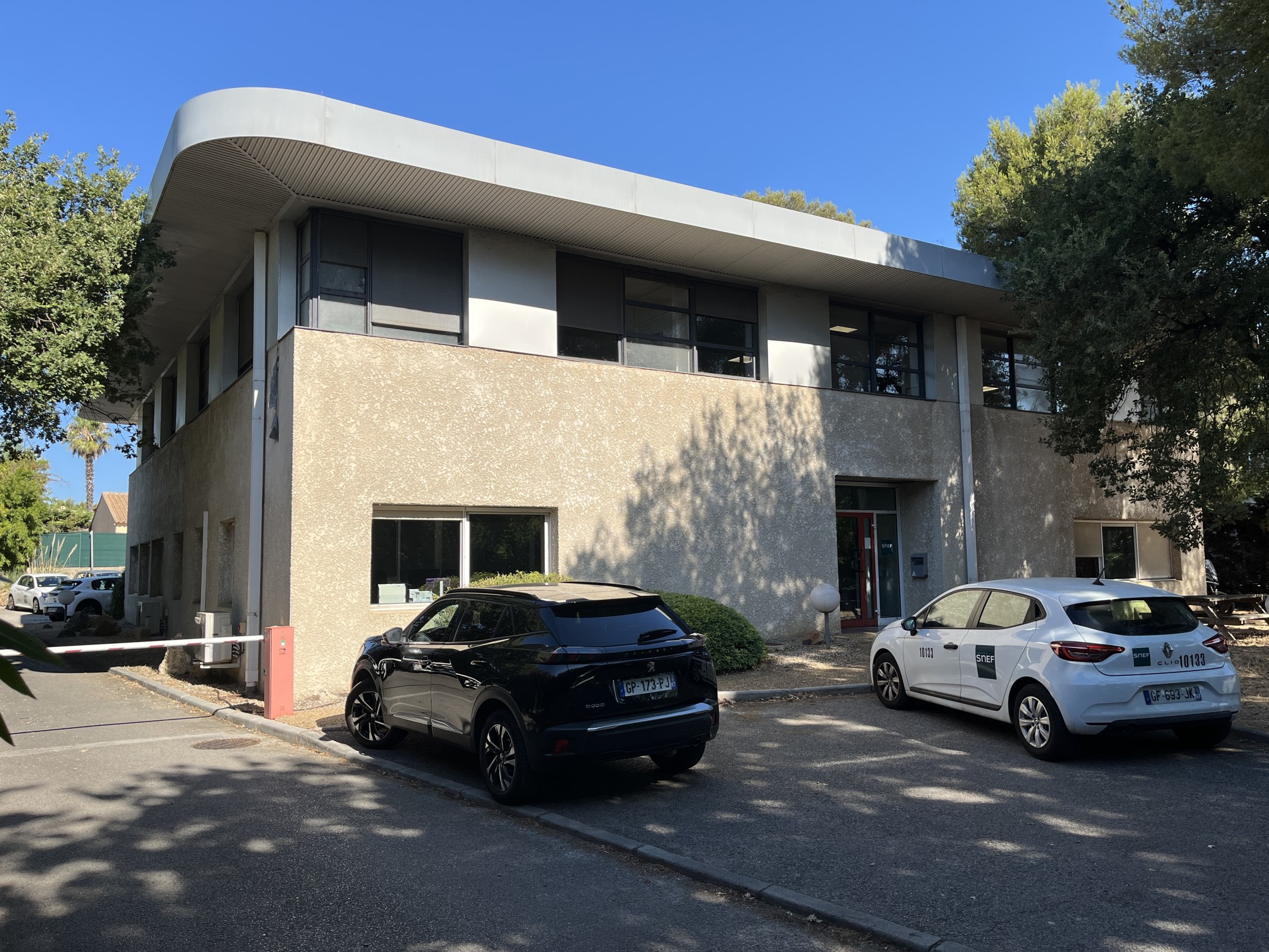 Bureaux à louer à La Seyne-sur-Mer, 800 m² non divisibles dans un bâtiment indépendant sur terrain clos avec parking. Locaux cloisonnés, climatisés, faux-plafond, sol souple, sanitaires privatifs, parc arboré, portail. Disponibilité : 1er janvier 2026.