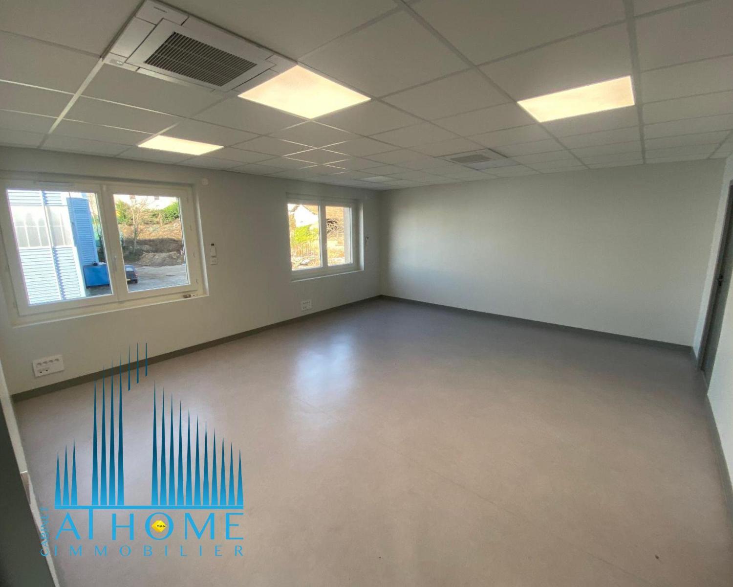 Nous proposons à la location une surface de bureaux de 59 m² avec vitrine plain pied PMR, bénéficiant d'un bon visuel et d'un stationnement aisé à deux pas de l'accès RD 498 - Bon état